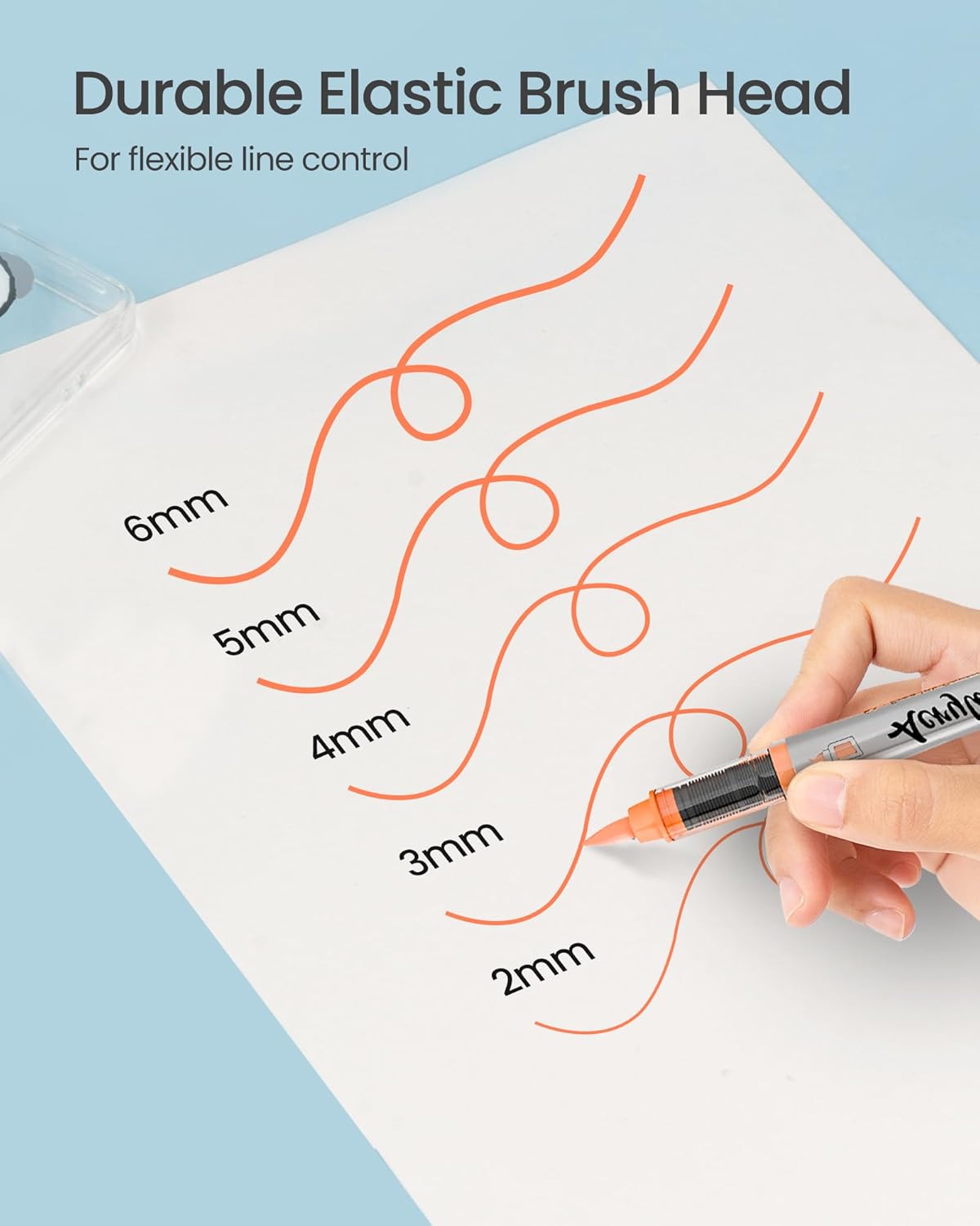 - ✅【Brush Tips for Versatile Application】 The flexible brush tips adapt to both broad strokes and intricate details. Use the tip for fine lines or tilt the marker to utilize the brush edge for smooth, gradient blending—perfect for creating natural skin tones, portrait illustrations, or adding depth to character designs.