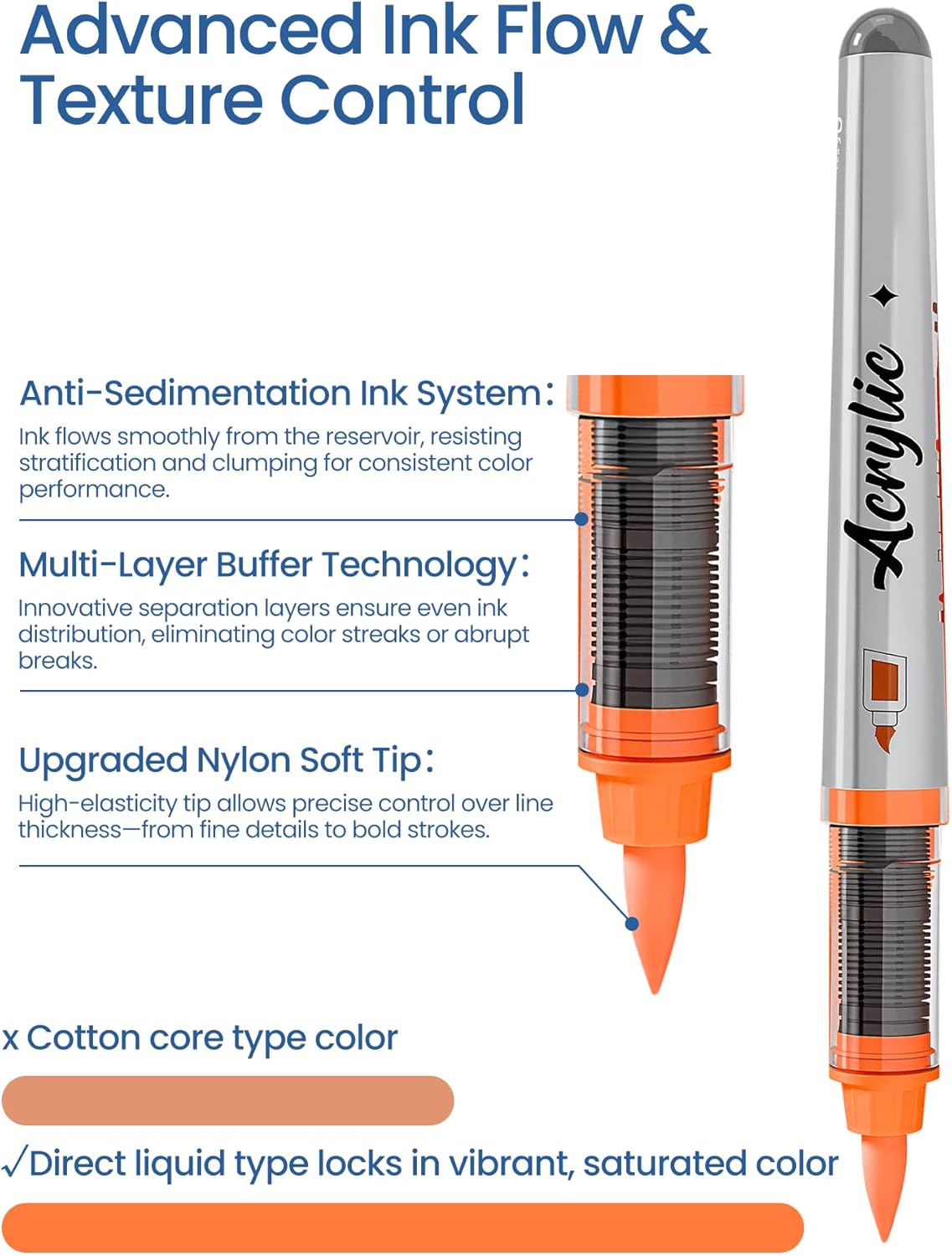 - ✅【Precision Ink Control for Effortless Detailing】Featuring a straight liquid ink system, these markers deliver consistent, no-bleed flow for precise coloring. The advanced design allows you to control ink output with ease, making them ideal for detailed skin-tone shading, fine line work, and realistic texture creation in art projects, illustrations, or craft designs.