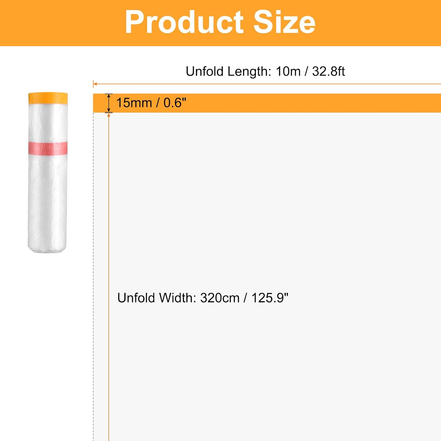 - Size - Total Size (unfold): 10m x 320cm / 32.8 ft x 106 in (L*W), Tape Width: 15mm / 0.6"