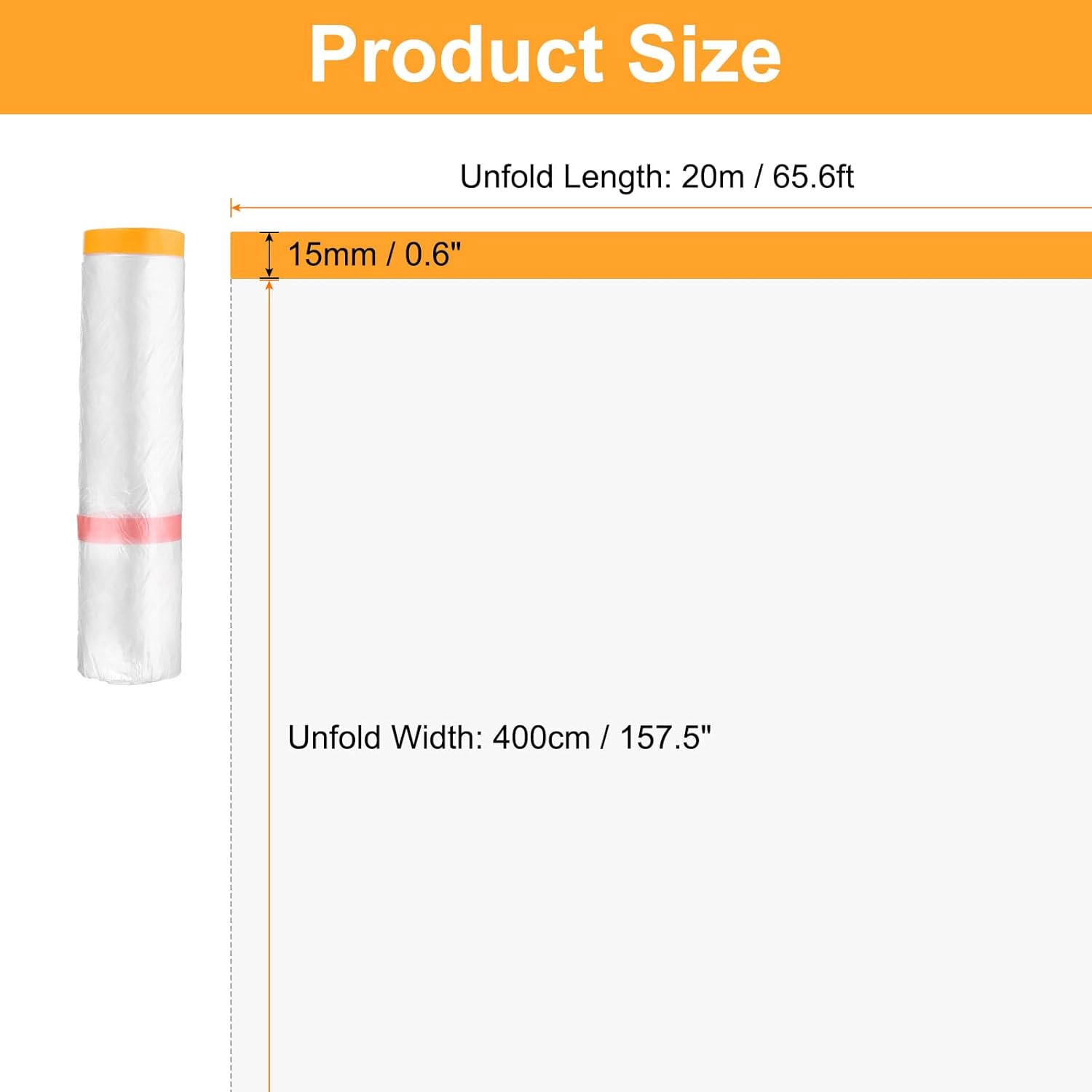 - Features - The painting plastic covering film is pre-taped, no additional tape tools or accessories are required, it can be firmly adhered to the surface, easy to use on walls, cabinets or cars. Double adhesive design on the top and bottom, easy to stick and firmly stick, full protection