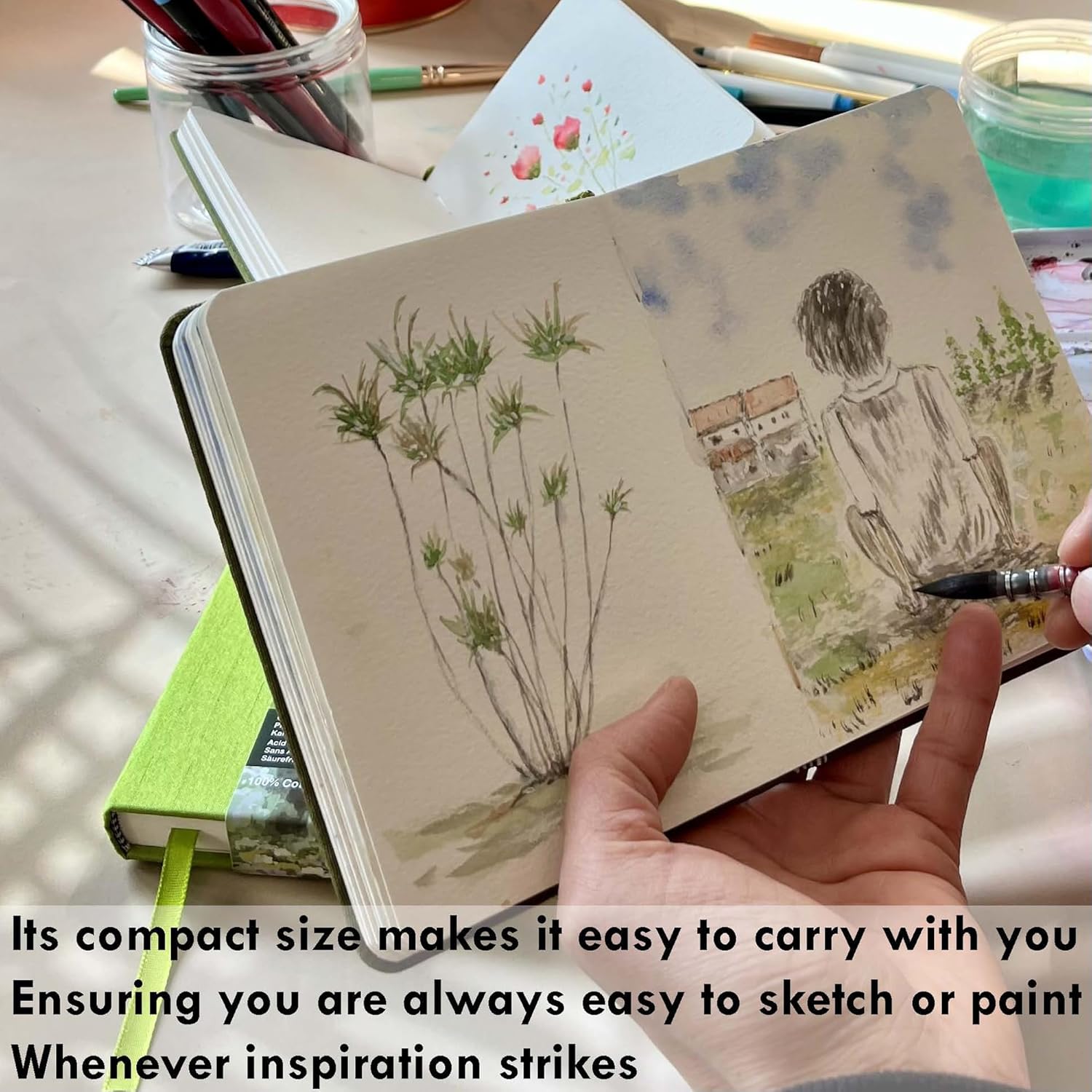 tumuarta Watercolor - Sketchbook, 7.5x5 in, 140 LB, 300GSM, 100% Cotton, Acid Free, Cold Press, 24 Sheets,48 Pages, Watercolor Paper Journal for Use As Travel Notebook and Mixed Media Pad On The Go