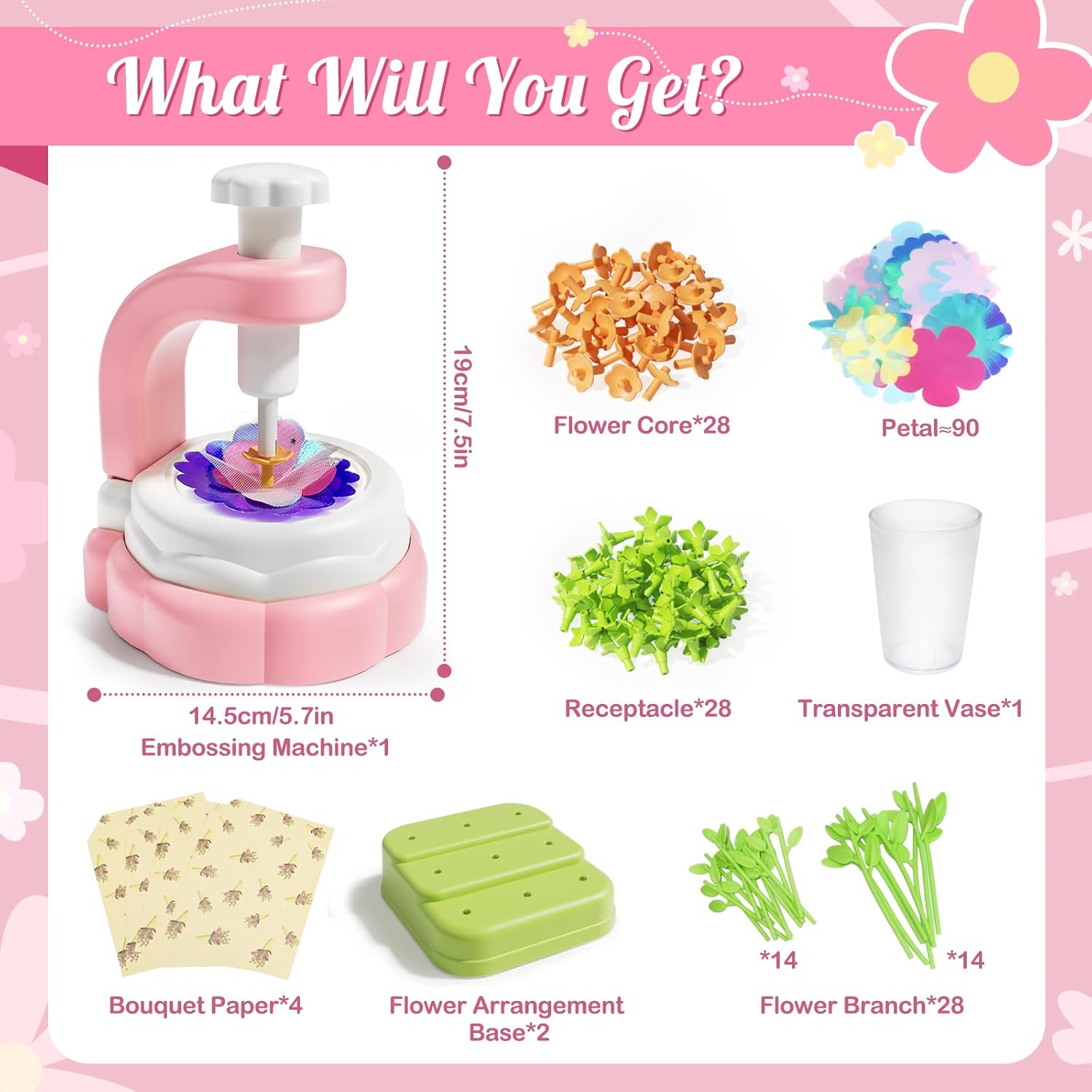 - What Will You Get - This toddler craft kit includes auxiliary machine, colorful petals, flower center, flower receptacle, long/short flower branches, base, vase, and bouquet wrapping paper. Each part is made of high quality materials to ensure safety and durability