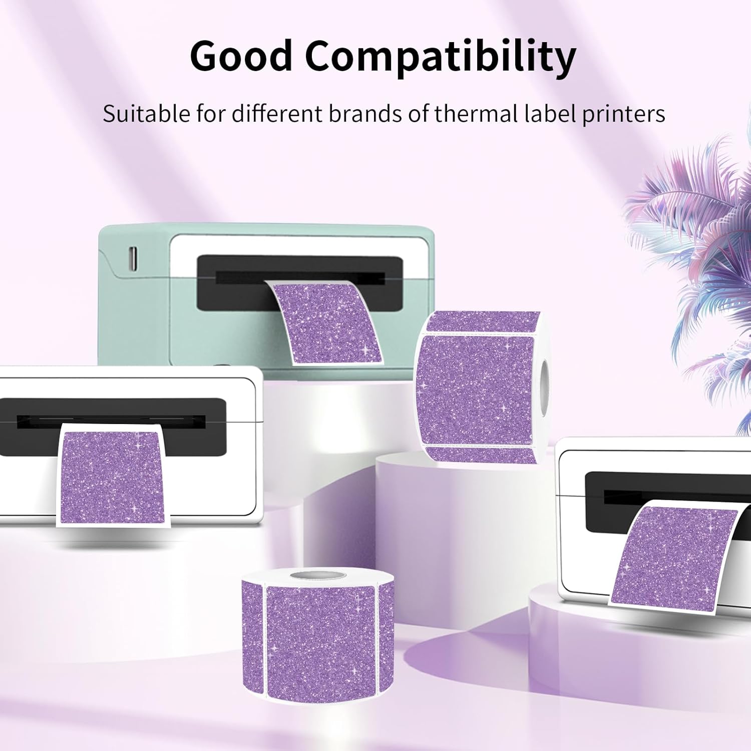 - Glitter Purple Self-Adhesive Direct Thermal Labels- No ink toner or ribbons are needed