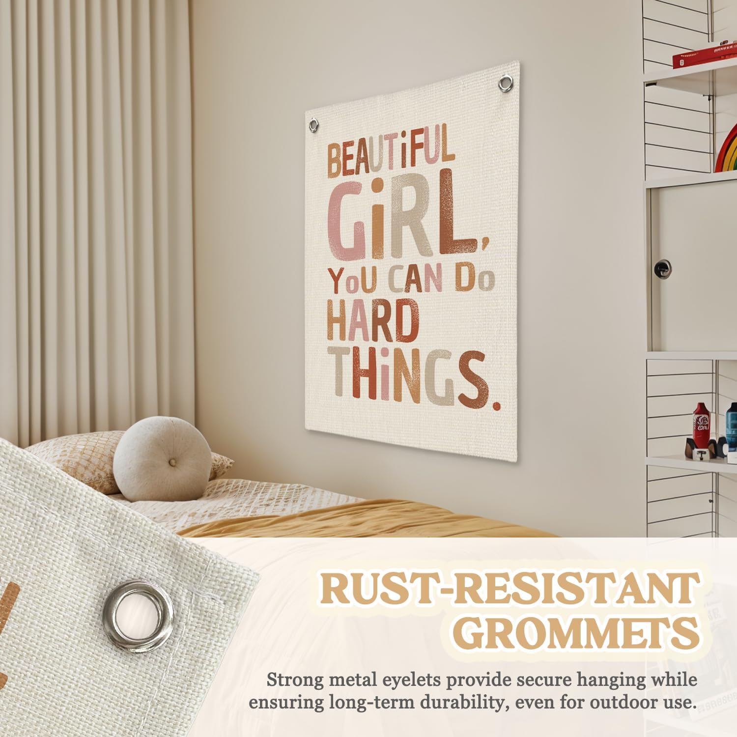 - [Easy to Display] Equipped with two sturdy metal eyelets, our linen banner is easy to display on walls, doors, or windows.