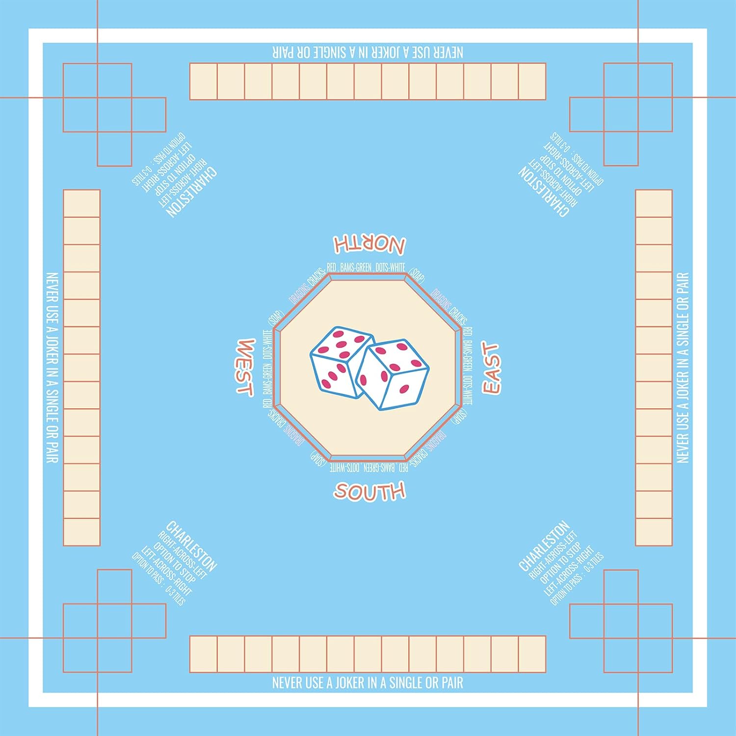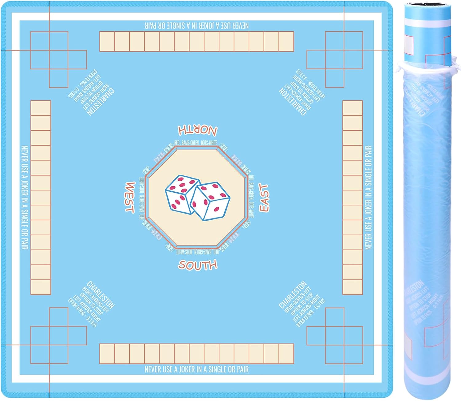 Mahjong Mat for Table 31.5"x31.5", MahJongg Mat Cloth Cover with Game Rules, Mahjong Tablecloth for Card Games, Tile Games, Board Games Table Mat (Sky Blue)