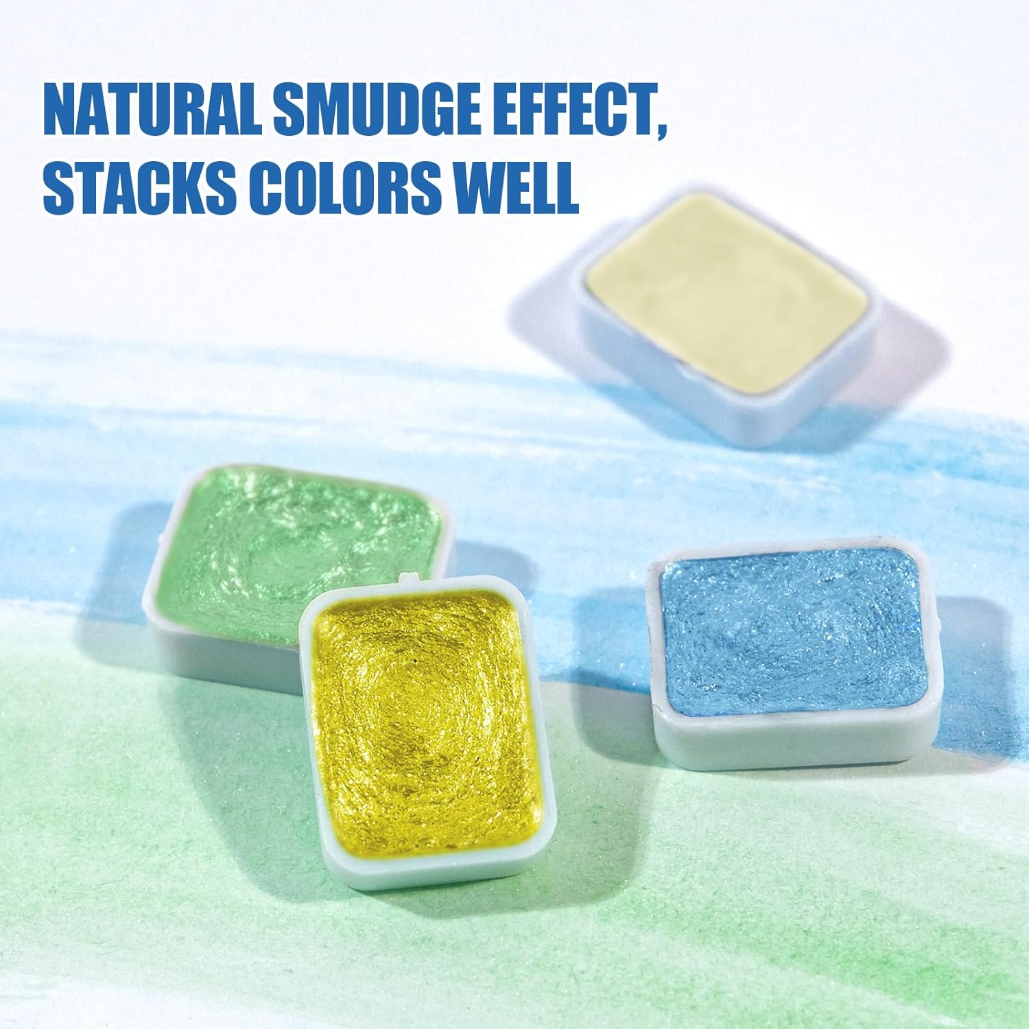 - 【Color-Blendable & Smudgeable】Professional watercolor paint set achieve a smudge effect. Water paint also allow custom mixing and blending to create various colors. Due to high pearl powder content, color vibrancy is slightly affected, but combining with regular watercolor paint sets enables an expanded color palette
