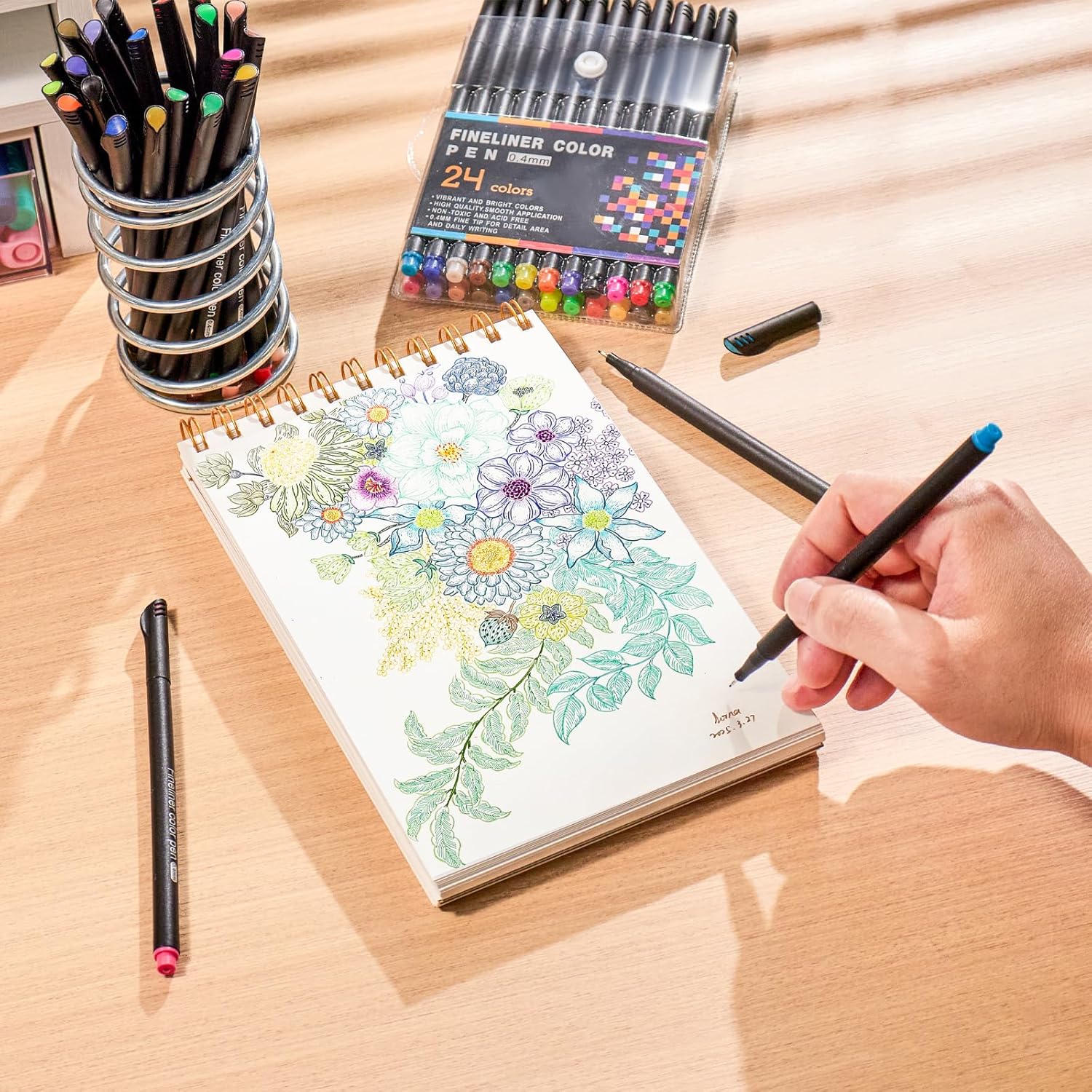 - Multipurpose Colors: Includes 24 colors for journaling, doodling, or sketching. Great fineliner color pens and drawing pens for artists