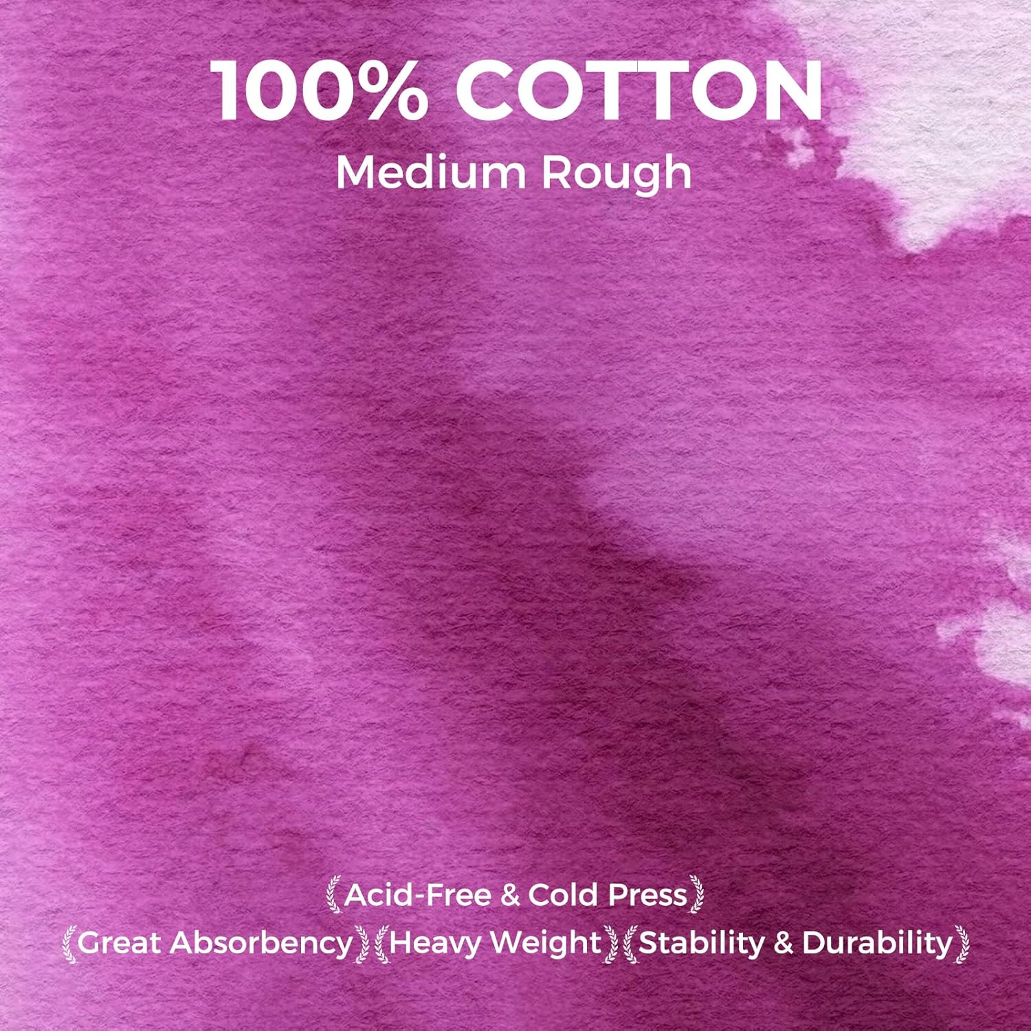 - PERFECT TEXTURE - Watercolor paper has a cold-pressed surface with a perfectly balanced texture between smooth and rough which allows pigments to spread evenly and be absorbed without any unexpected outcome.