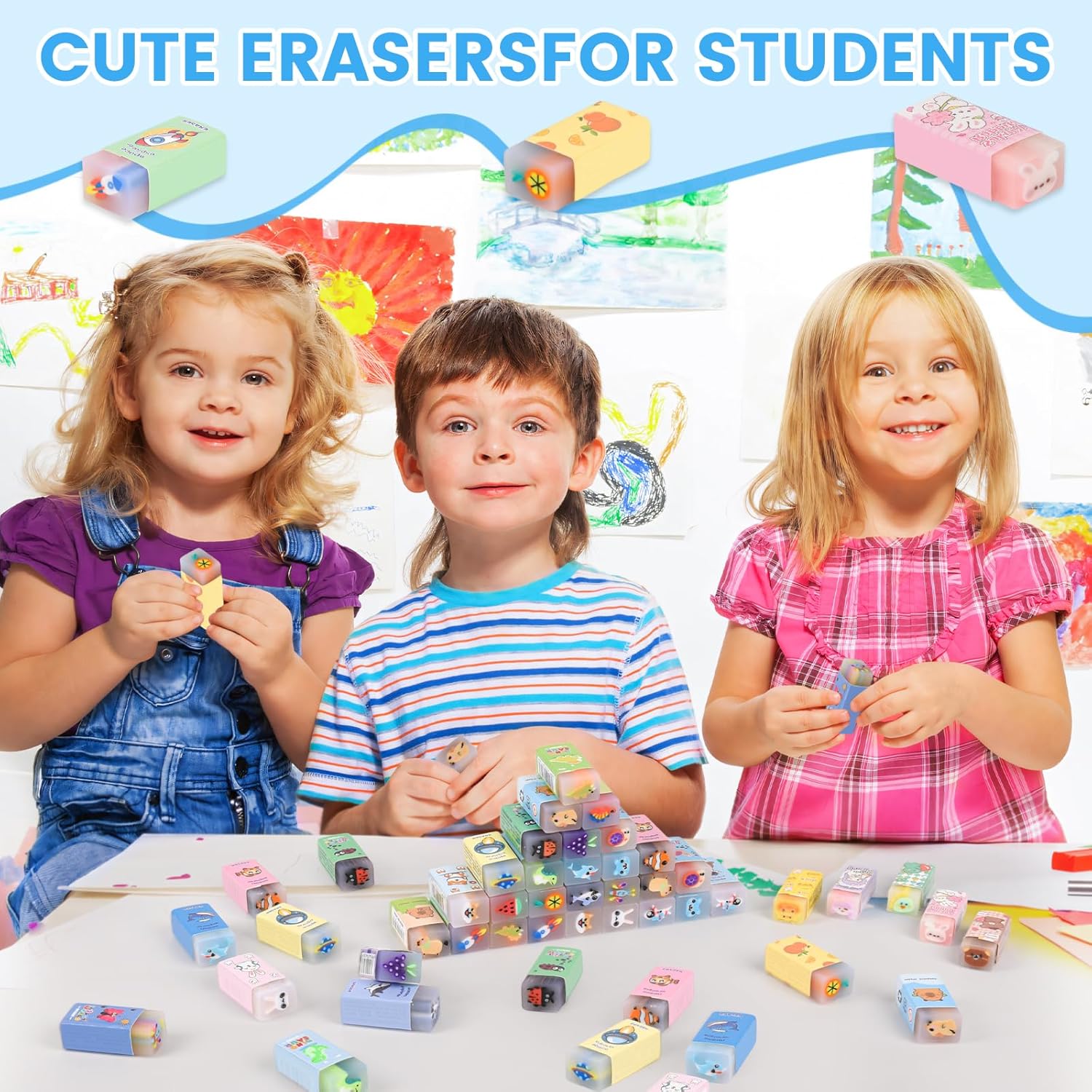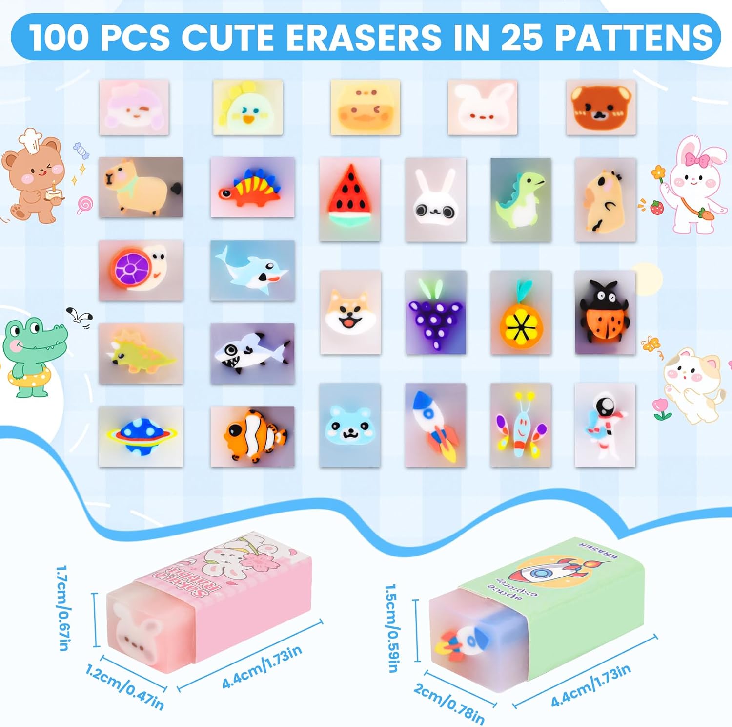 100 Pcs Cute Eraser for Kids Bulk Kawaii Erasers for Classroom Fun Erasers for Back to School Supplies Kid Party Favors Gift