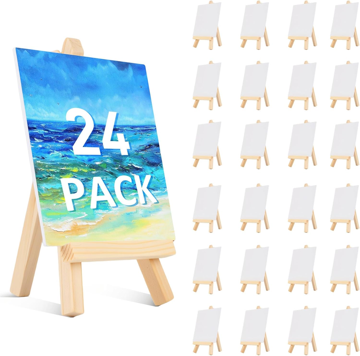 24 Pcs 5 Inch Mini Wood Display Easel, Small Wooden Easel Stand Art Craft Painting Triangle Stand Canvas Holder for Card Artist Photos Tabletop
