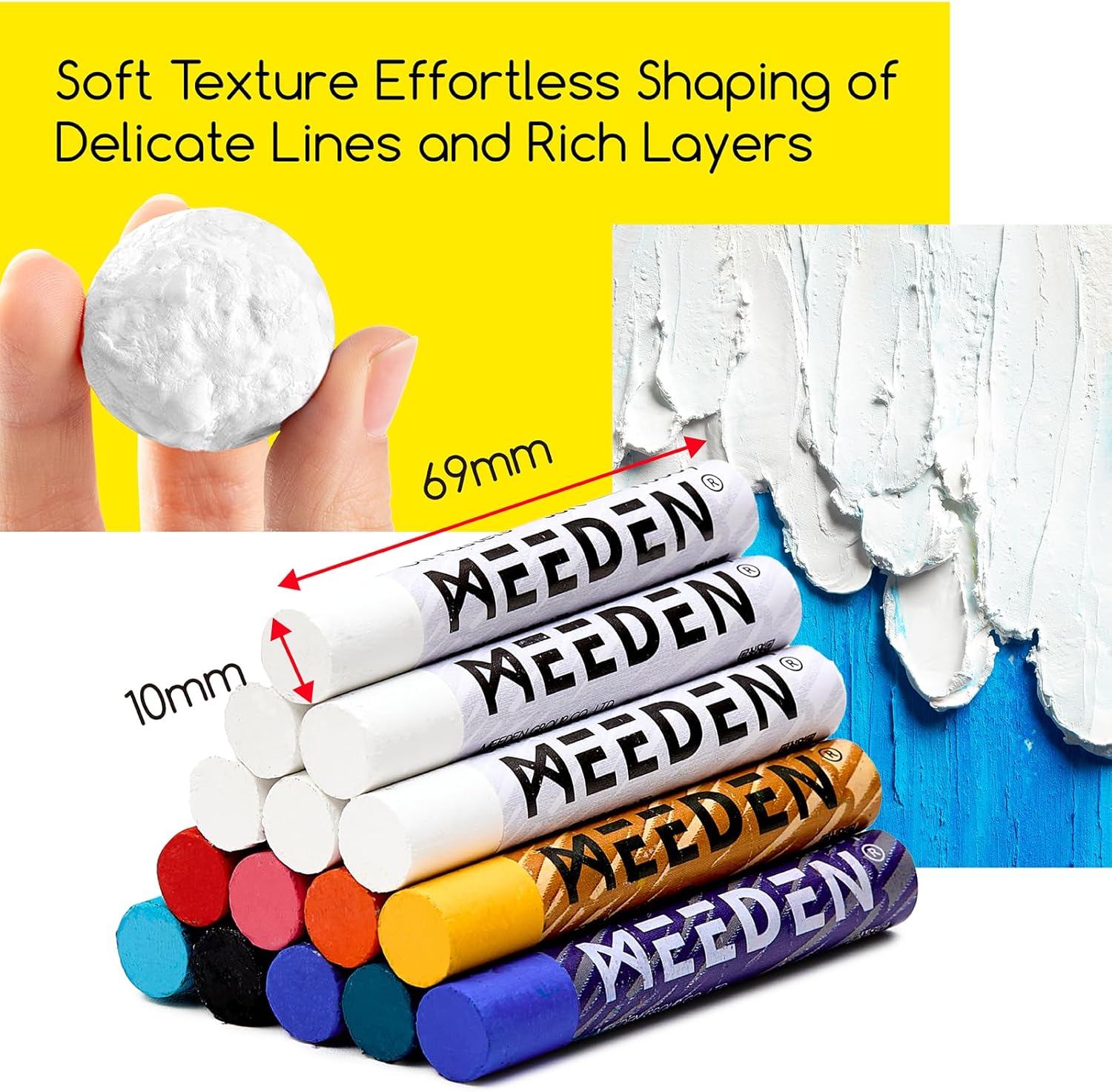 - Soft Texture: White oil crayons have a soft texture that enables smooth blending and coloring on card, oil pastel paper pad, canvas, or other surfaces. The round chalk's fine craftsmanship ensures even color application and accurate coverage, making it perfect for techniques like layering, shading, illustration, scratching, impasto, and dotting