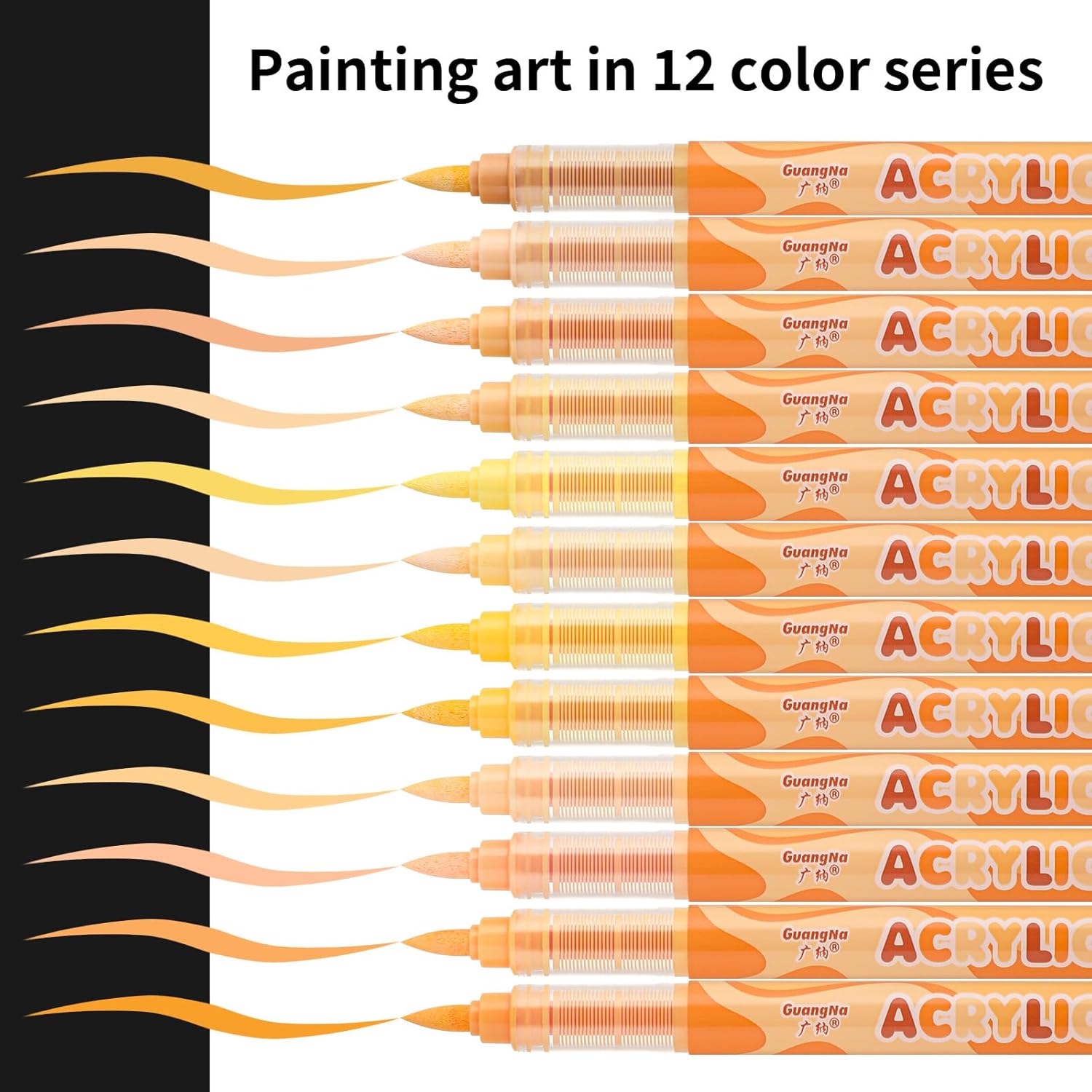 - 【Premium Guangna Acrylic Paint Markers Set-12 Vibrant Colors】:Our Guangna acrylic paint markers set includes 12 richly pigmented, vibrant colors. We offer Sweet Pink, Skin Tone, Macaron, Brown, and Red Brown series to meet all your creative needs from bold designs to subtle gradients.