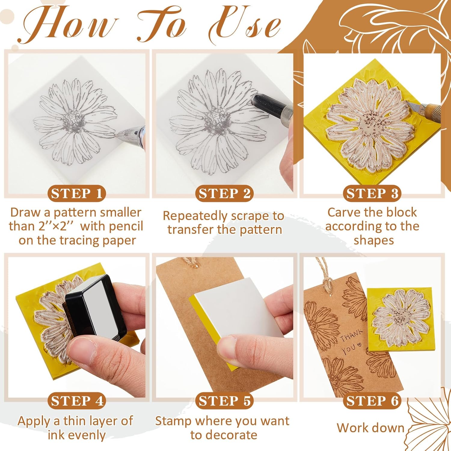 - High Compatibility: the rubber blocks accept transfers from laser printers, ink jet printers and pencil manuscripts, after transferring the patterns, you just need to carve the block according to the shapes