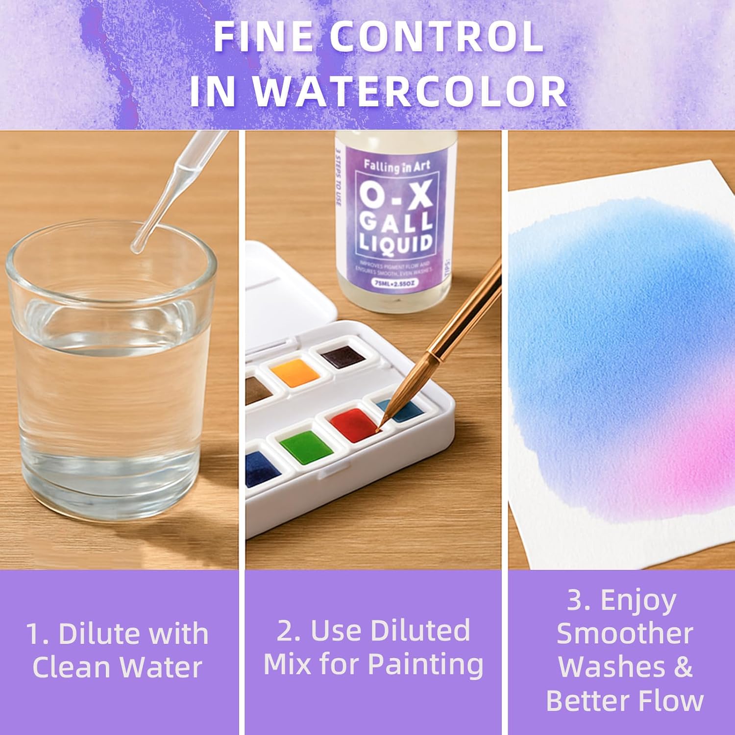 - Versatile Use: Falling in Art ox gall liquid is compatible with watercolor and gouache, suitable for artists of all levels. The convenient size also makes it easy to store and transport, so you can take your creativity wherever you go