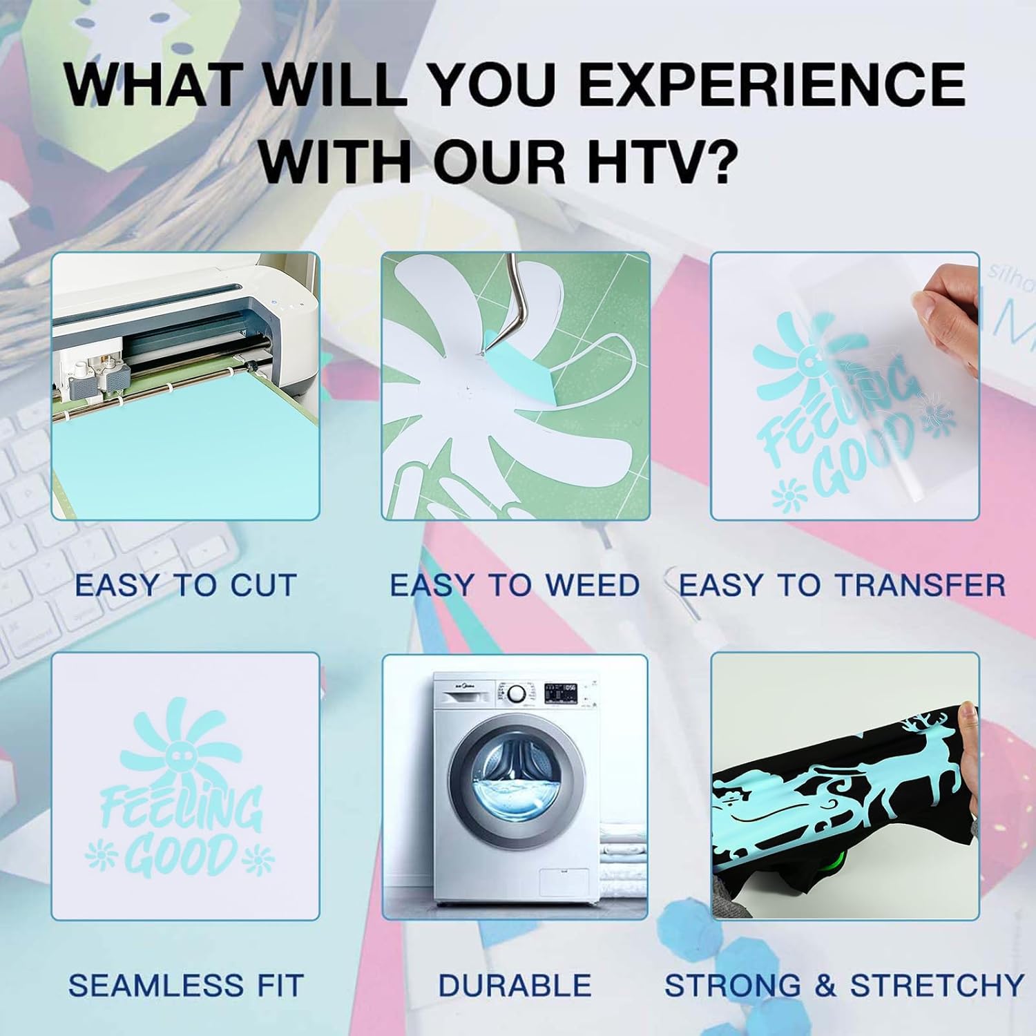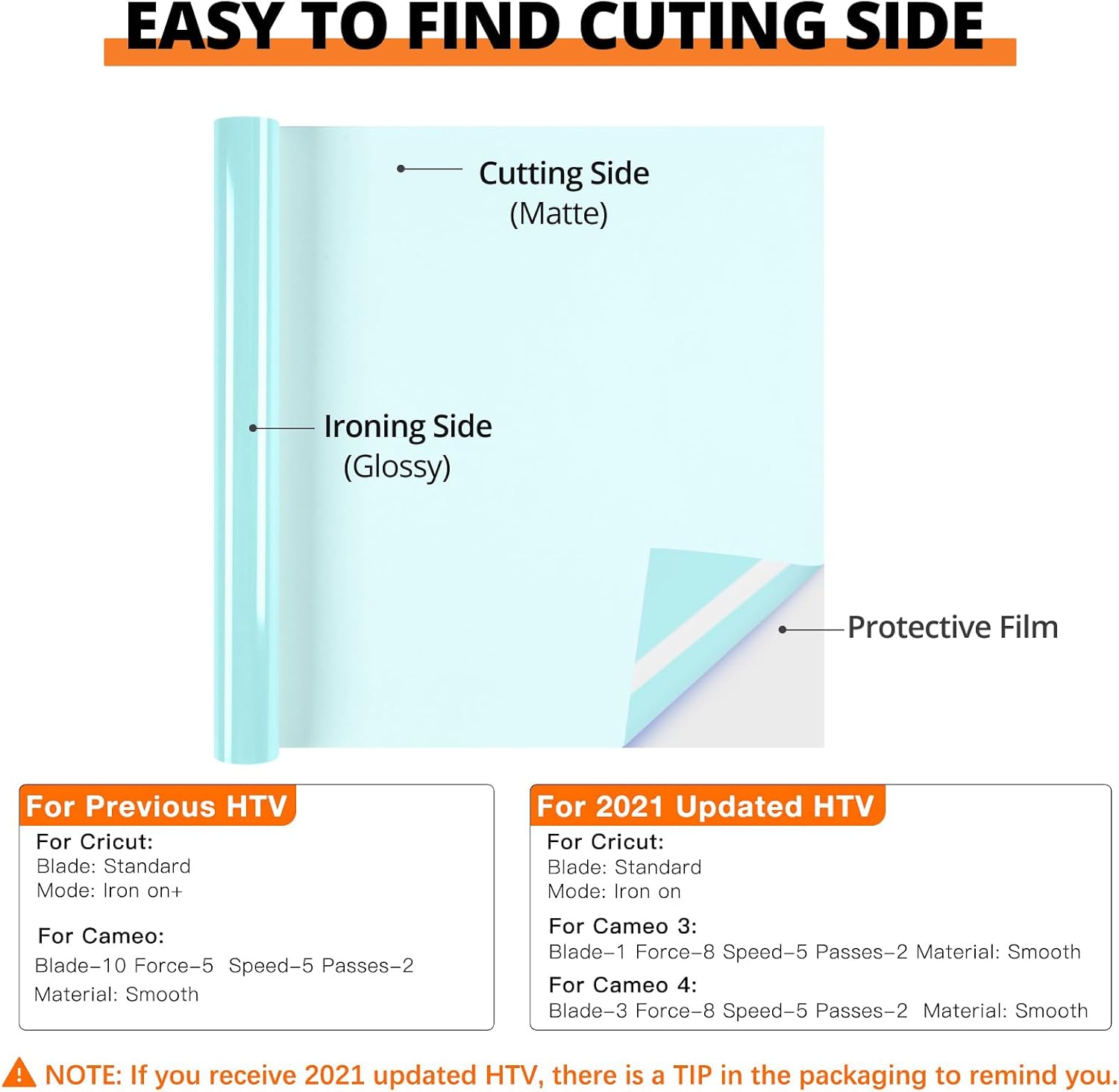 - 【12 INCH x 8 FEET】HTVRONT htv vinyl rolls are easy and convenient to cut into different sizes of art designs or logos or letters and perfect for 12''x12" and 12''x24" cutting mats. Our iron on vinyl are compatible for all cutter machines
