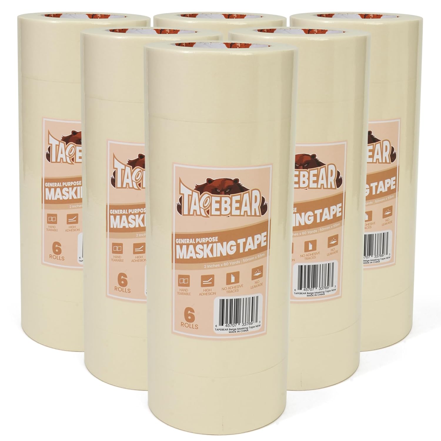 TAPEBEAR General Purpose Masking Tape 2 Inch x 60 Yards, Beige White Painters Tape for Painting, Labeling, DIY Arts Crafts, Home Office School Projects, 36 Rolls