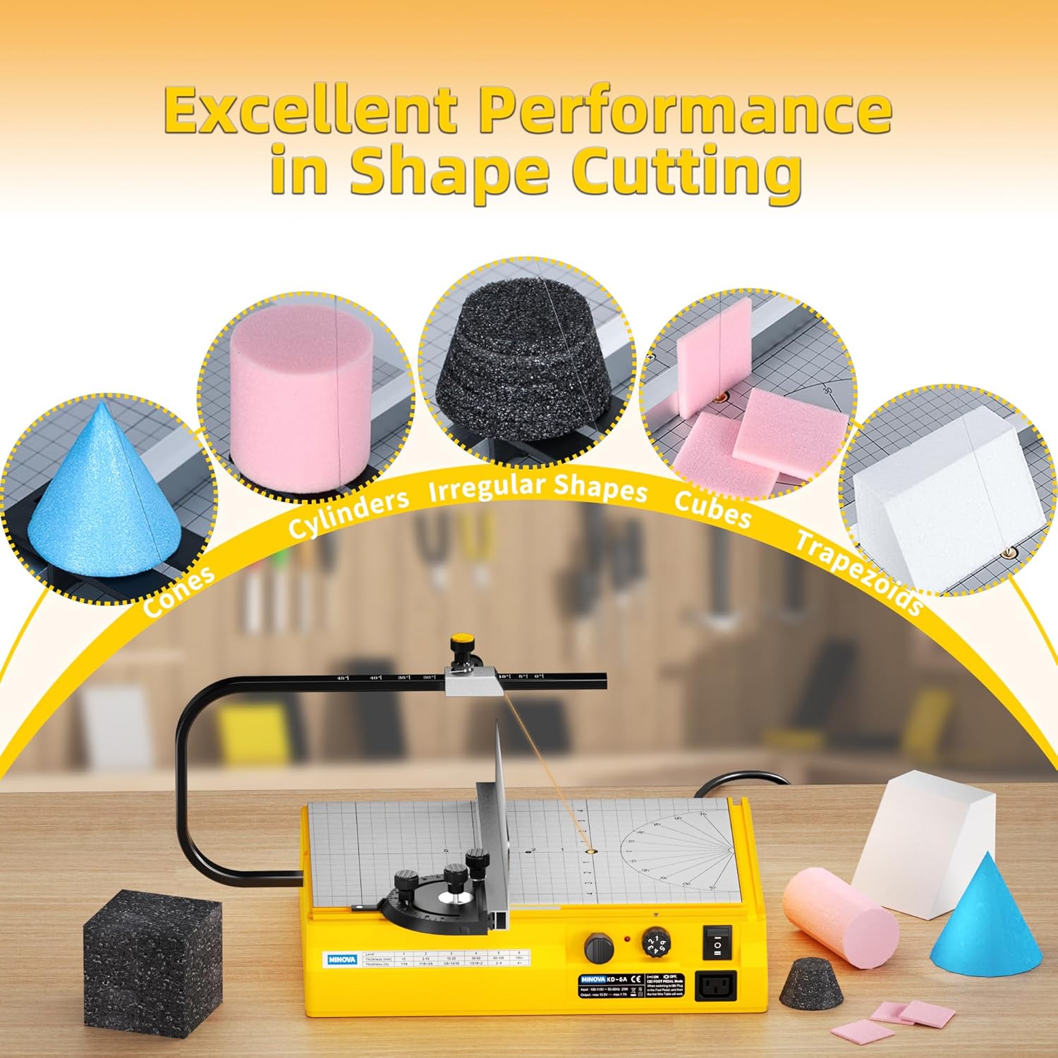 - ⏏︎PRECISION CUTTING - The cutting wire heats up to 660°F (350°C) with 6 adjustable temperature settings, enabling smooth cutting of foam, EVA, sponge, PE foam, KT board, and insulation materials of varying densities. Ensures clean, precise cuts with flawless shaping