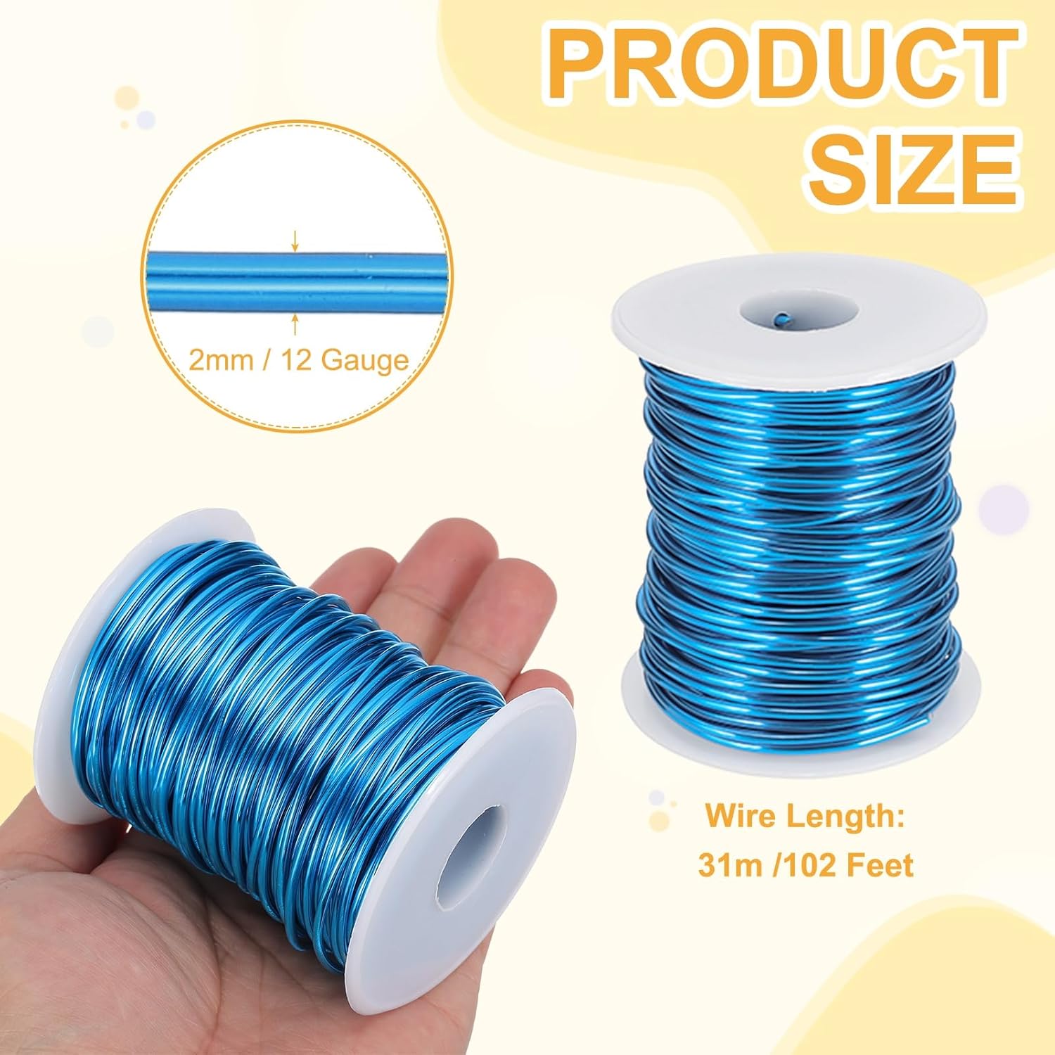 uxcell 12 Gauge / 2mm Anodized Aluminum Wire for Jewelry Craft Making, 102 Feet Bendable Flexible Wire for DIY Home Decor Gardening Sculpture, Blue