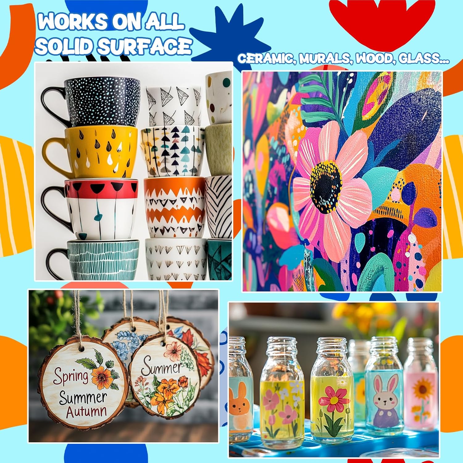 - Works on Multiple Surfaces: These acrylic paint pens are perfect for use on a variety of surfaces like Tagging, Rock, paper, glass, metal, wood, plastic, stone, leather, canvas, textiles, and more. Unleash your creativity and transform any surface into your canvas with our 15mm jumbo poster markers.