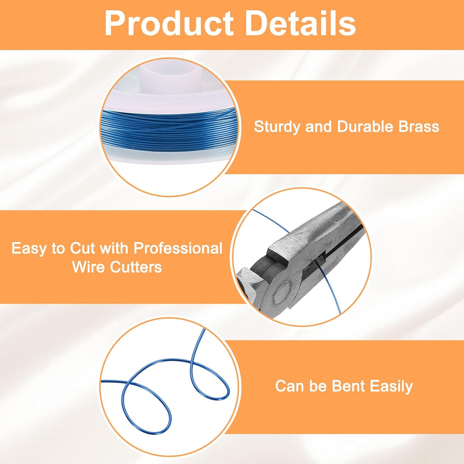 HARFINGTON 20ft Jewelry Wire, 24 Gauge (0.5mm) Brass Craft Soft Metal Tarnish Resistant Copper Beading Wire for Jewelry Making Supplies Crafting, Blue