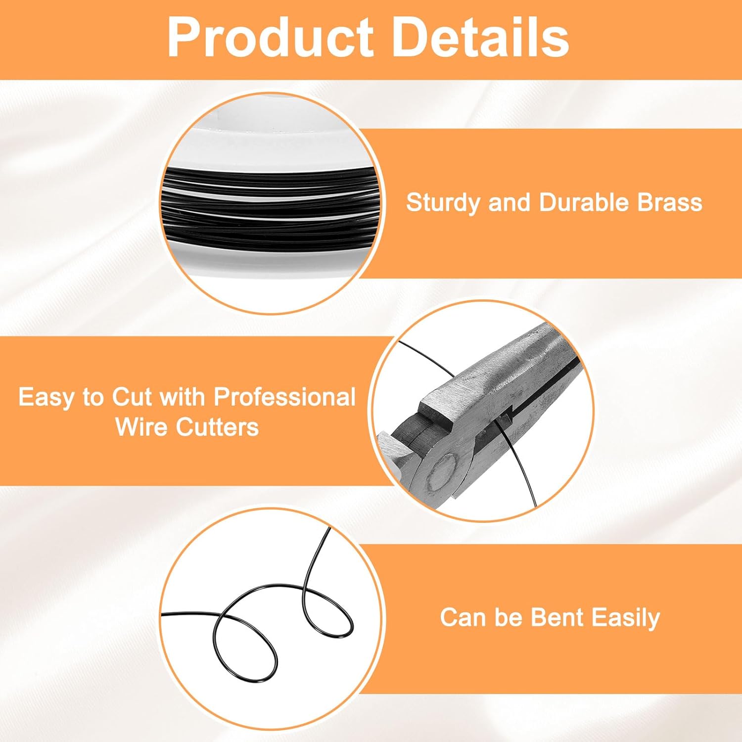 HARFINGTON 8ft Jewelry Wire, 20 Gauge (0.8mm) Brass Craft Soft Metal Tarnish Resistant Copper Beading Wire for Jewelry Making Supplies Crafting, Black