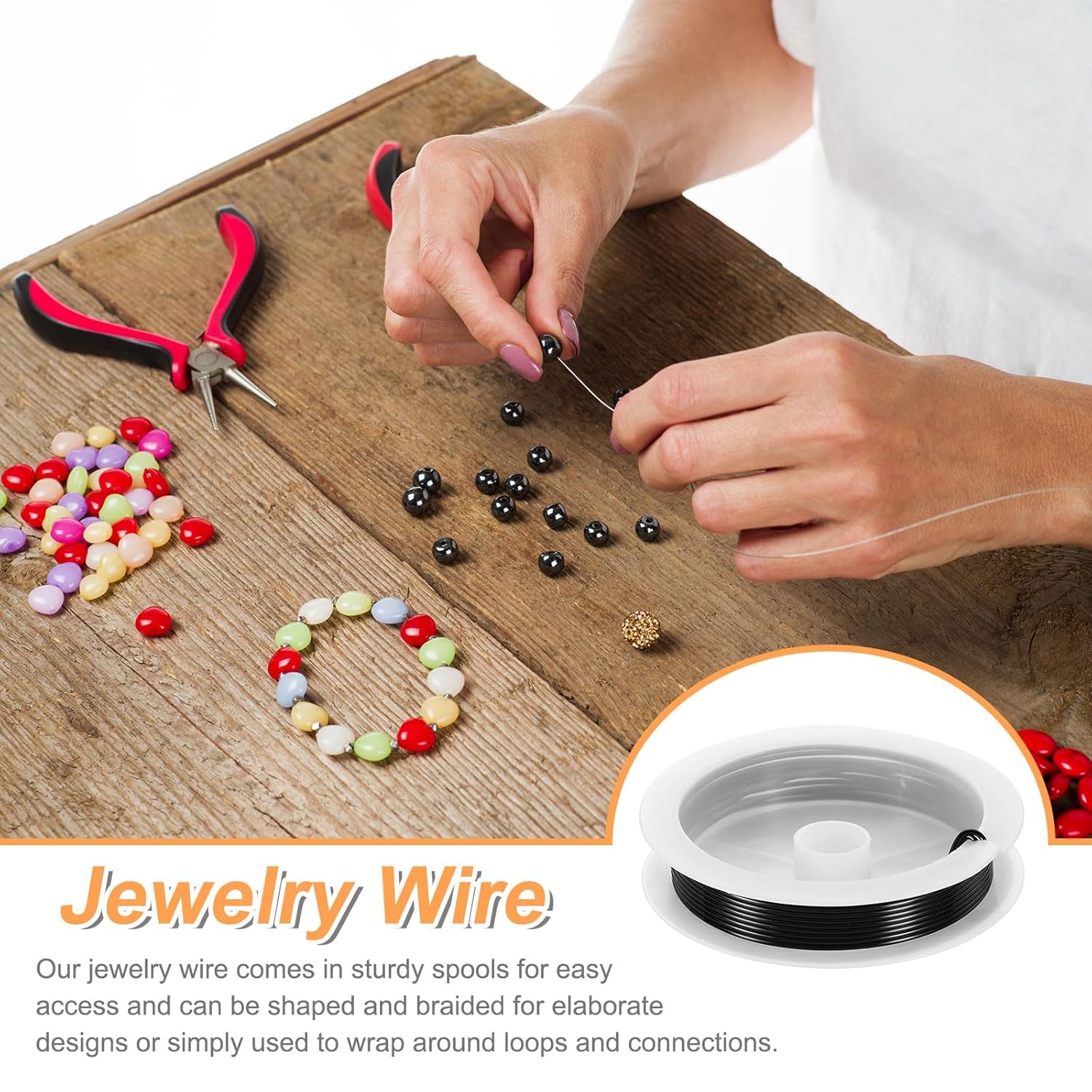- Features - The jewelry wire is bendable and flexible, easy to use, and can be used with different types of beads, necklaces, bracelets, and other jewelry DIY projects. In addition, it is packaged in a sturdy spool, which is convenient to take out the metal craft wire and keep it neat and not messy.