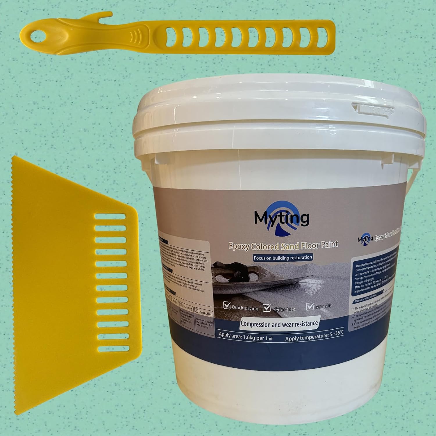 Epoxy Colored Sand Floor Paint, Epoxy Floor Paint High Gloss Marble Effect Coating for Indoor and Outdoor, Wear-resistant and non-slip Self-leveling Coating Green 176OZ(5KG)