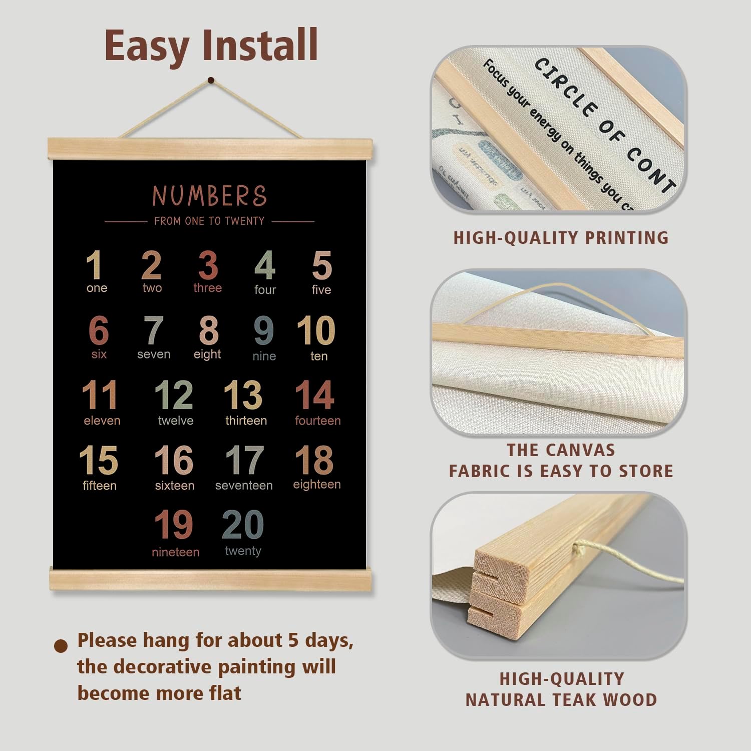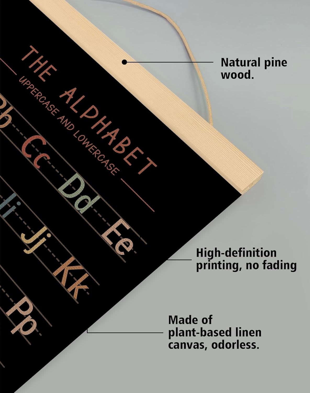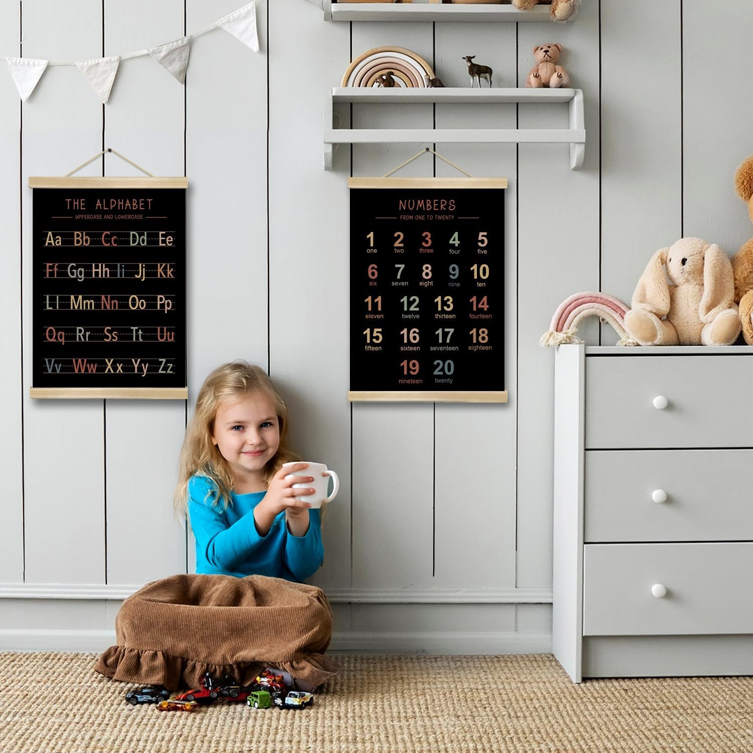 - Material & Ideal Size:Natural Linen,14 x 18.5 inches, Set of 2,one alphabet poster and one numbers 1–20 chart ,a full learning combo.These alphabet and number posters are printed on premium natural linen fabric, giving a rustic yet elegant texture.
