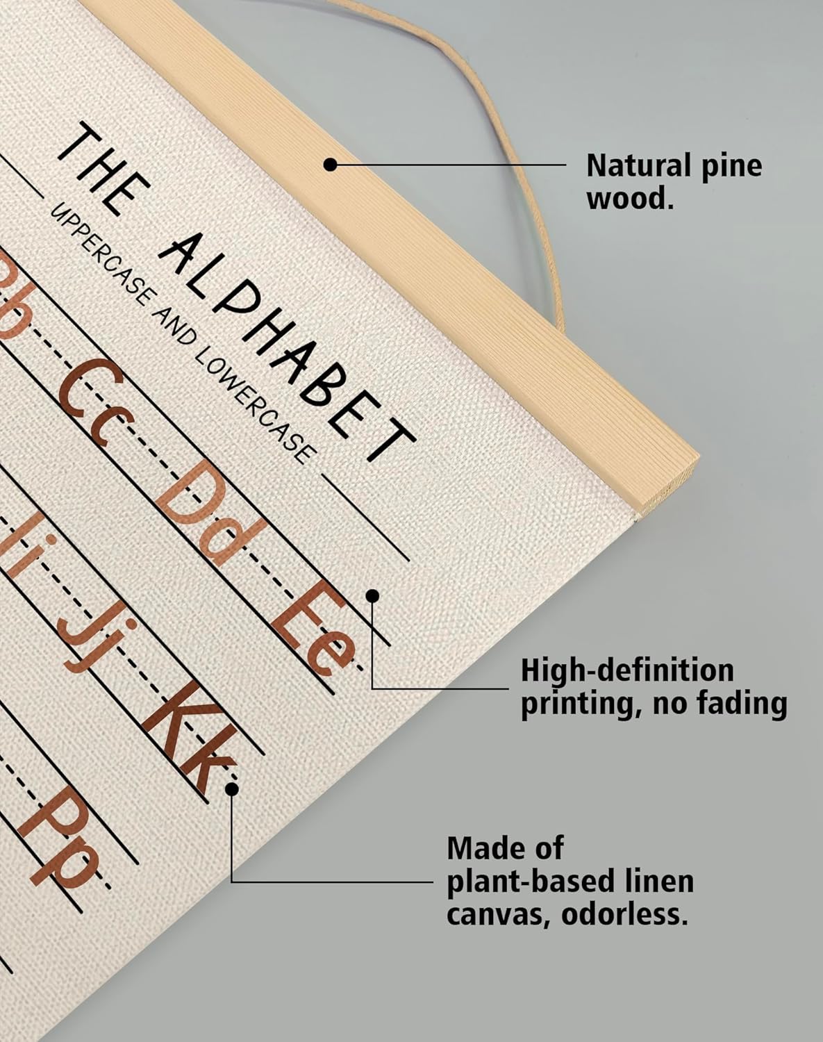 - Material & Ideal Size:Natural Linen,14 x 18.5 inches, Set of 2,one alphabet poster and one numbers 1–20 chart ,a full learning combo.These alphabet and number posters are printed on premium natural linen fabric, giving a rustic yet elegant texture.