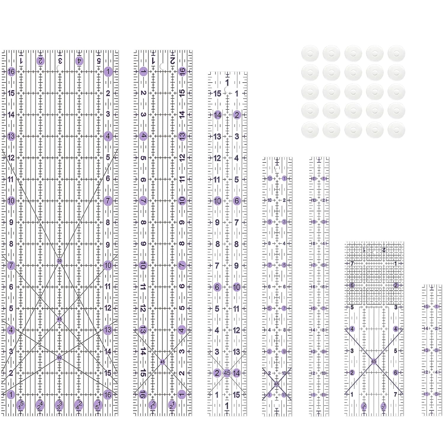 - Package includes 7 Acrylic Rulers, (6"x17",3"x17",2"x16",1.5"x12",1"x12",1"x6",8"x3")to meet all your patchwork needs.