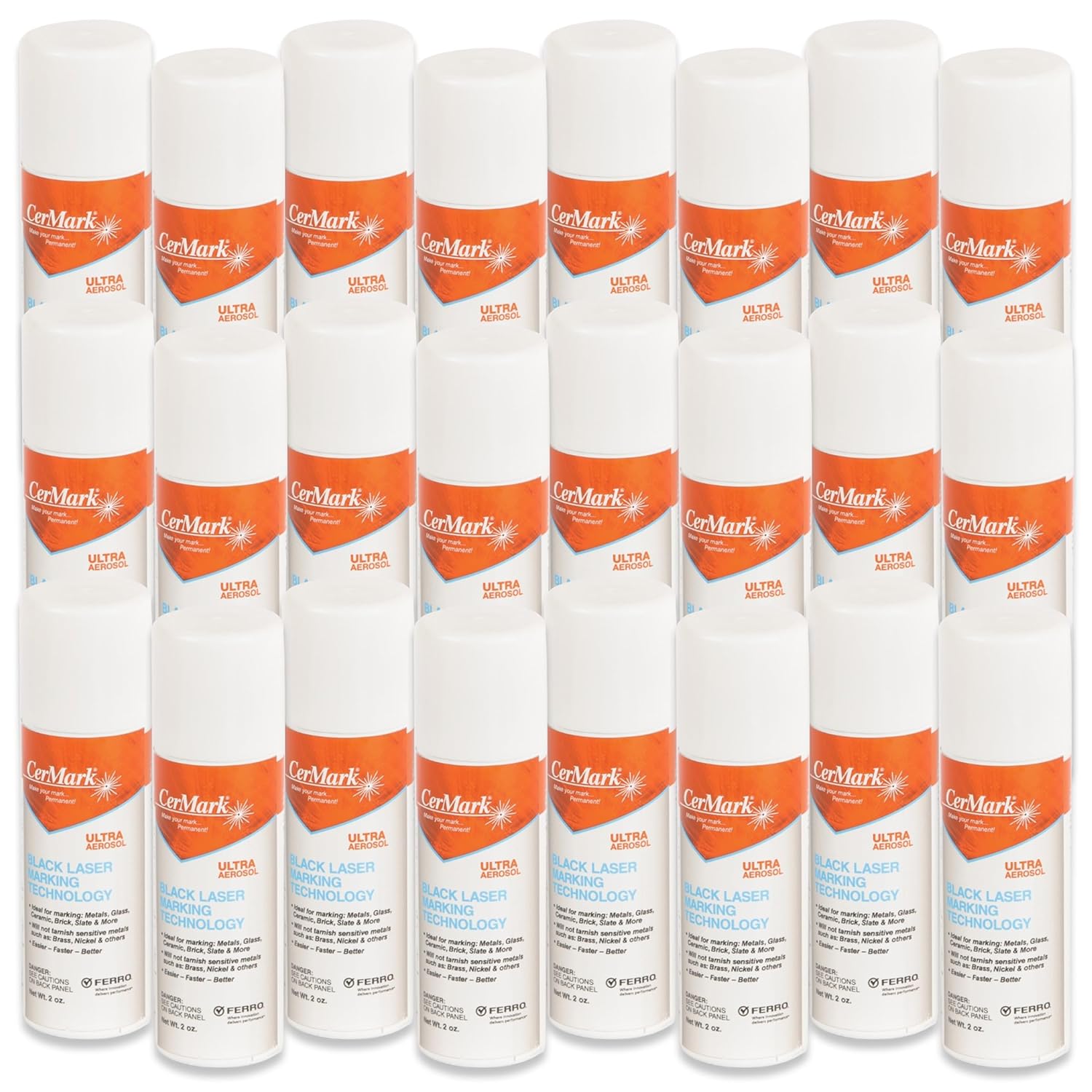 Cermark Ultra Aerosol Spray for Black Laser Marking. Great for Stainless, Glass, Slate, Metal, & Ceramic. Bonding Adhesive (2oz) (24)
