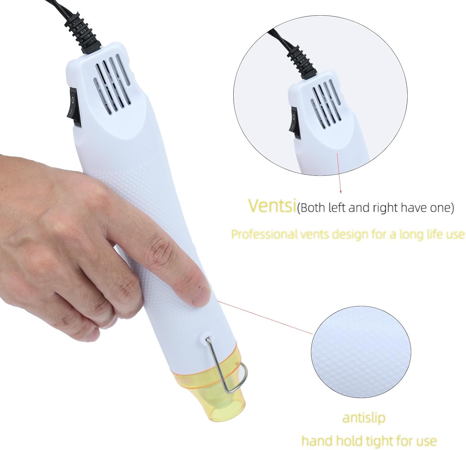 Heat Gun for Crafting, 110V 300W Handed Hot Air Gun, 3.28FT Ultra-Long Cable Portable Heat Gun with Stand and Power Cord for Shrinking Wrapping PVC, DIY Embossing and Drying Paint (White)