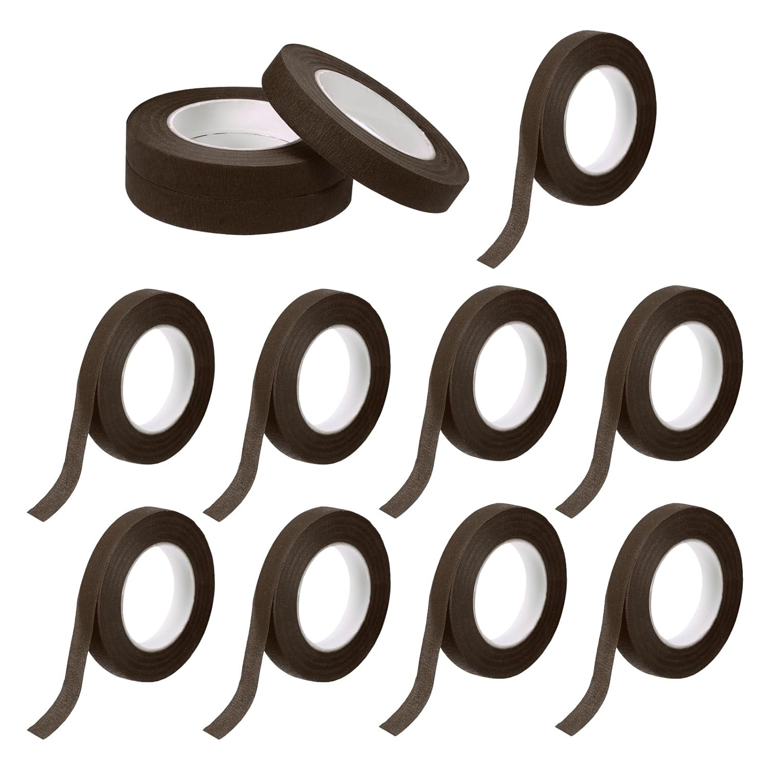 MECCANIXITY 12 Rolls Floral Tapes, 30 Yard x 1/16 in Florist Crepe Flowers Bouquets Tape Adhesive Waterproof for Flower Arranging Wrapping, Dark Brown