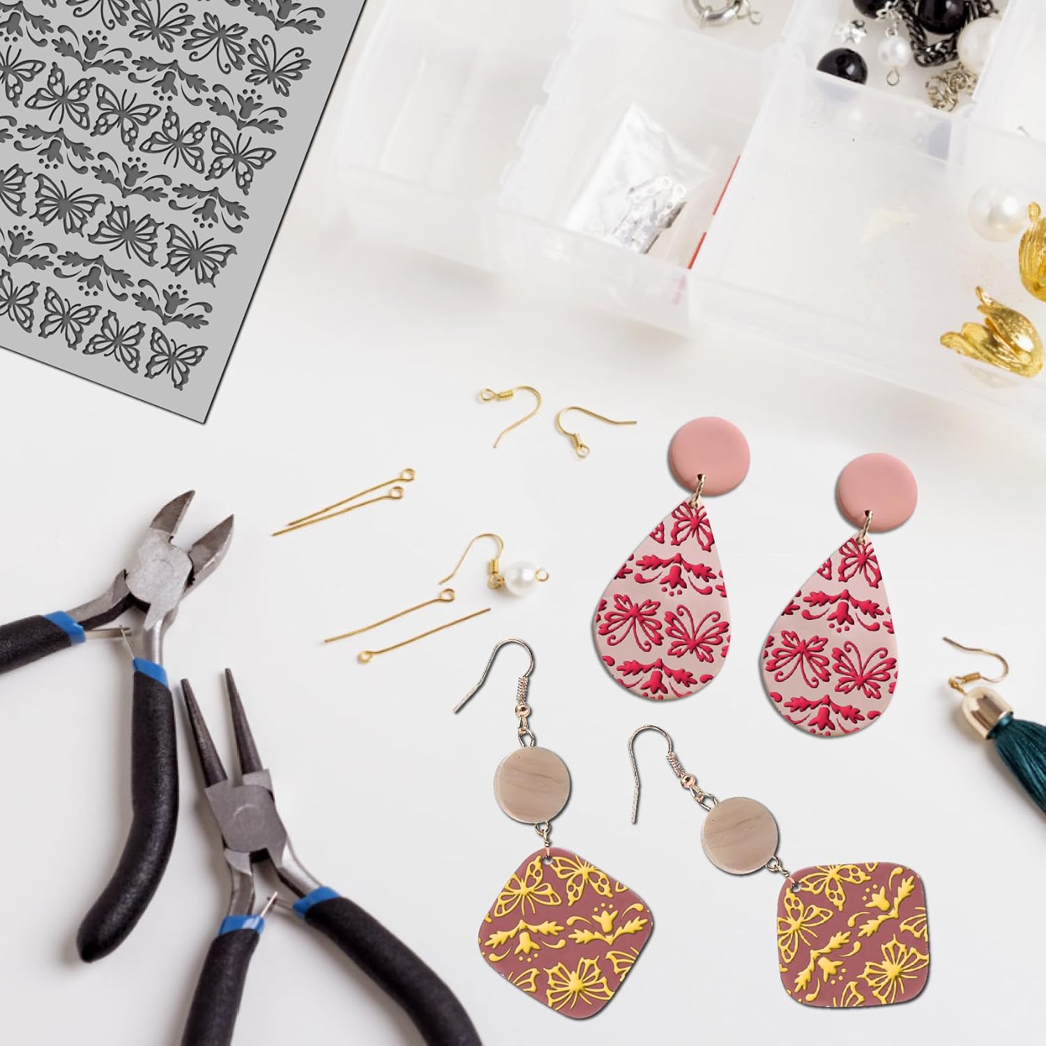 - Clear Imprints: Our polymer clay texture mats and stencils can make clear imprints on the clay. The butterfly themed texture deisign can inspire your creativity and help you make stunning earrings design