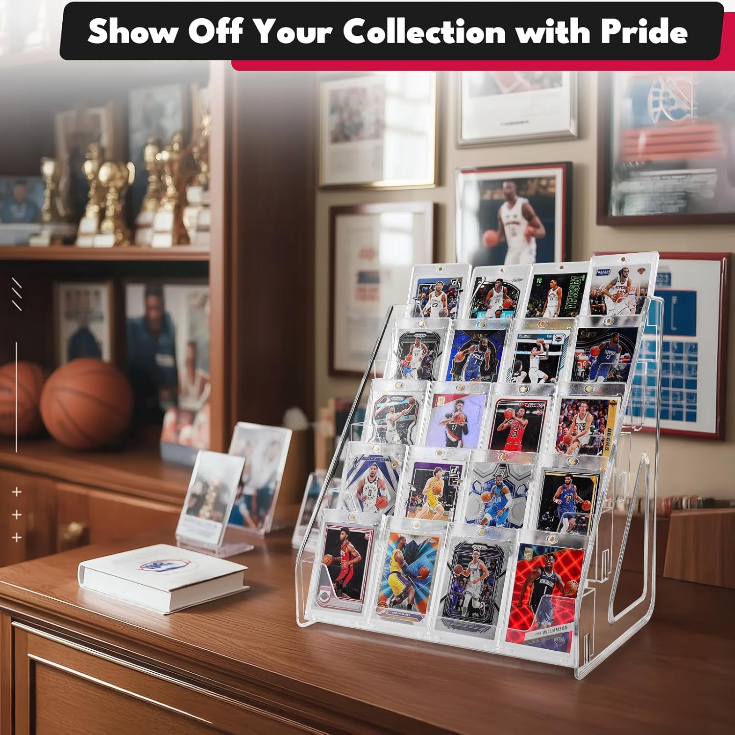 - πγπππππ ππ’π₯ ππ’πππππ§π’π₯π¦ ππ‘π π©ππ‘ππ’π₯π¦γShips flat-packed, a practical gift for card collectors, adds display value to any collectorβs setup. This sports card display stand is also perfect for vendors at card shows, helps to present high-value or limited-edition cards efficiently in a compact display area.