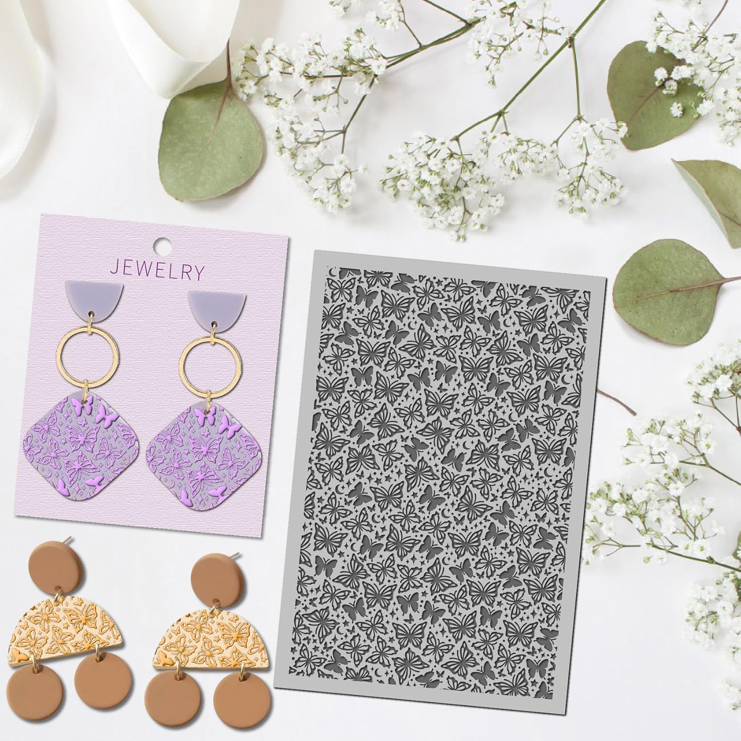 - Clear Imprints: Our polymer clay texture mats and stencils can make clear imprints on the clay. The butterfly themed texture deisign can inspire your creativity and help you make stunning earrings design