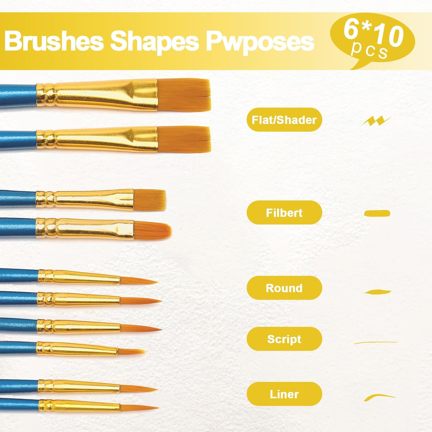 - Complete Kit: You will receive 12 pack small easel 24cm/9.4 inch x 18cm/7.1 inch, 12 reusable color palettes and 60 brushes that not only meet all your needs but also share with your partners