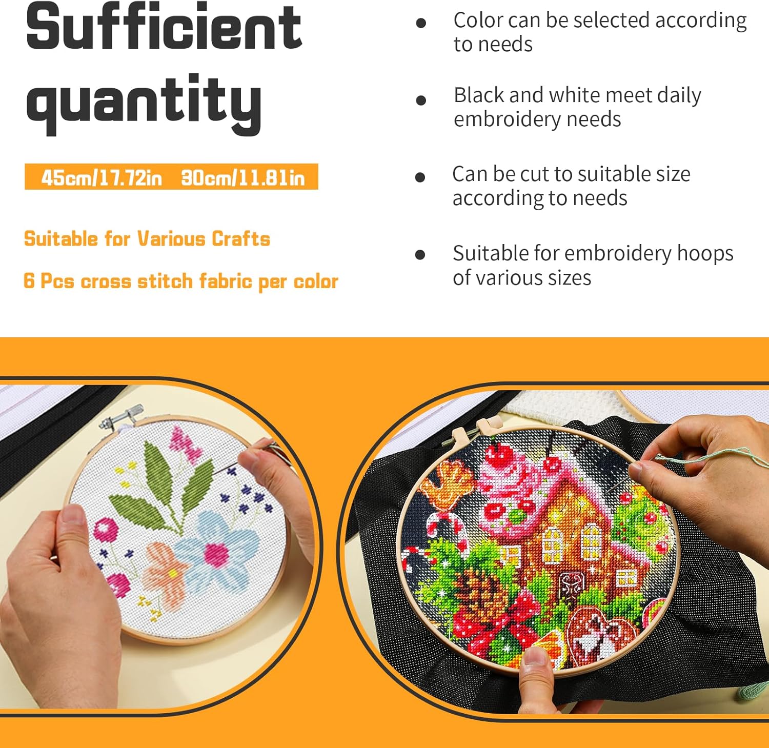 - 6 Pcs Cross Stitch Fabric: You will receive 6 pcs of high-quality embroidery fabric, each pcs 12 by 18 inches, perfect for cross-stitch, embroidery, and other needlework projects. The high quality cross stitch fabric can be easily cut to any size, making it ideal for everything from small crafts to larger, more intricate designs