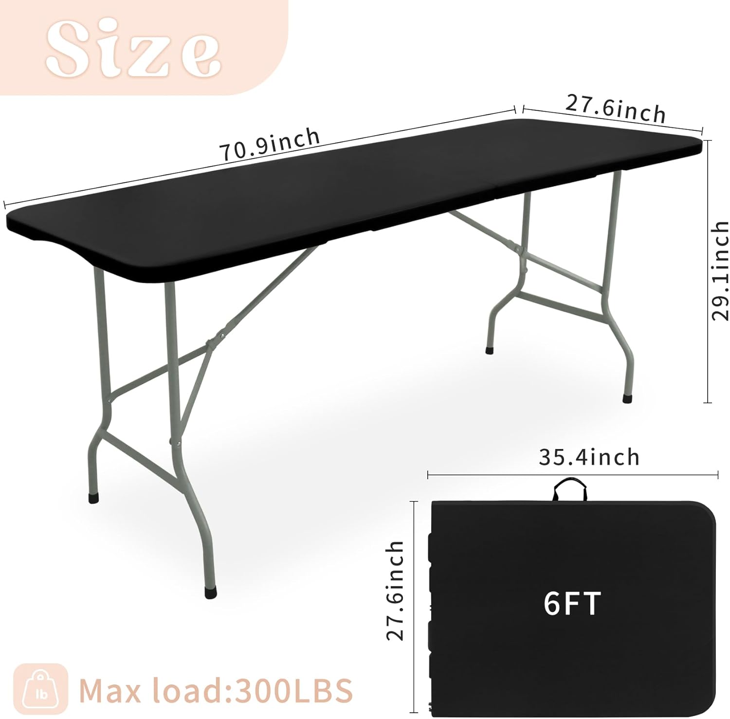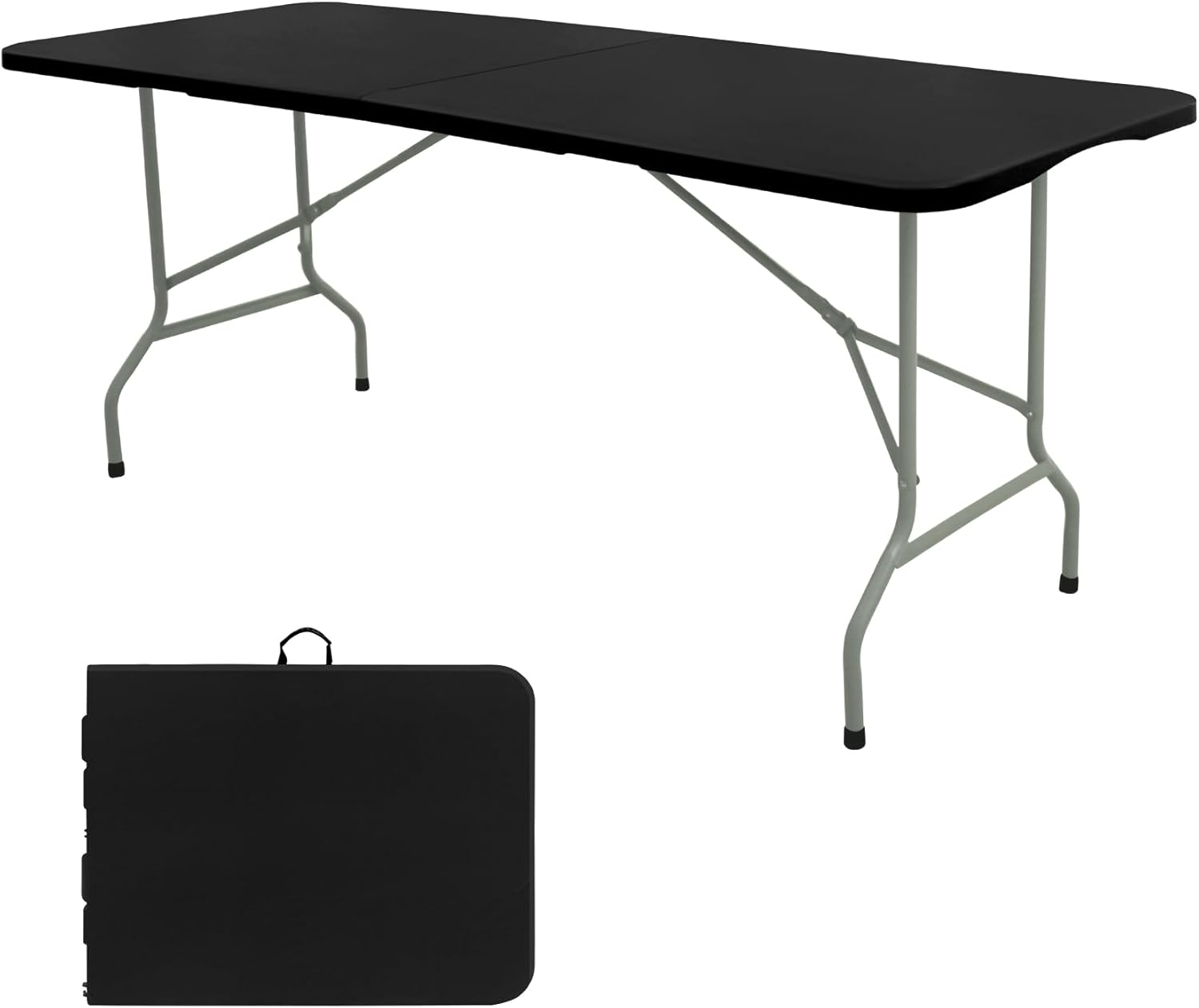 Folding Table 6 FT Camping Table Portable Plastic Rectangular Outdoor Dining Table Steel Legs Fold-in-Half with Carrying Handle for Indoor,Picnic,Party,Wedding,Events(Black)