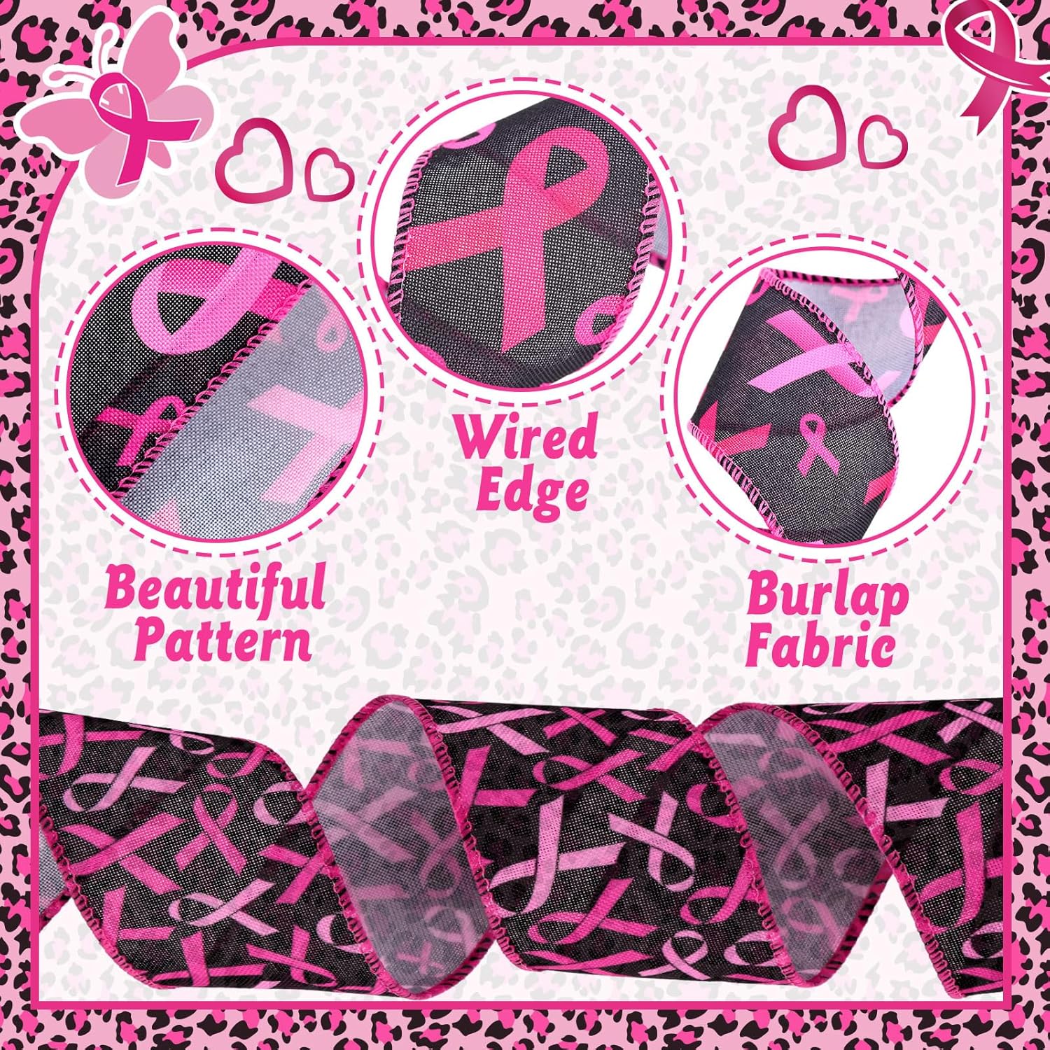 - Create a Breast Cancer Awareness Festive Spirit: our breast cancer awareness wired ribbon is the delicate accessory to elevate your breast cancer awareness decorations; Whether you're adorning your front door, staircase, tables, stairs, railings, candles, lights, trees or even creating your own breast cancer awareness inspired centerpieces, our ribbon will add a touch to many spaces