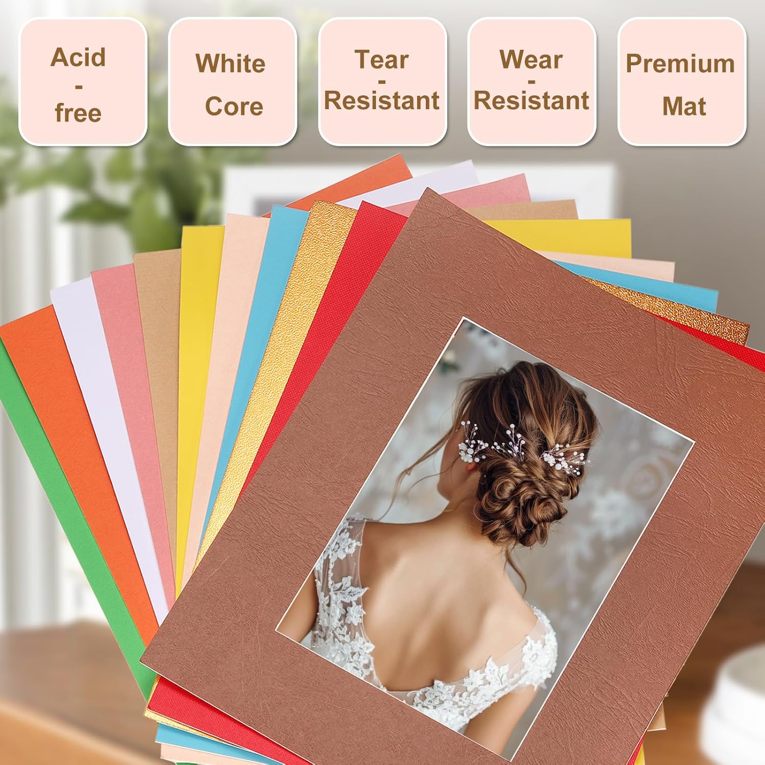Picture Mats, 8 x 10 for 5 x 7 Pictures Acid Free White Core Bevel Cut Frame Mattes for Display Art Measuring, Pink