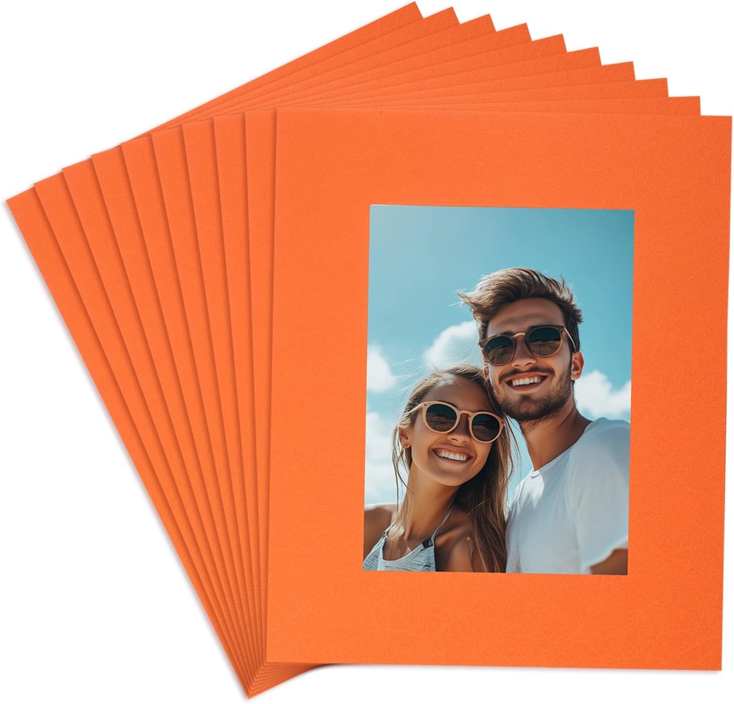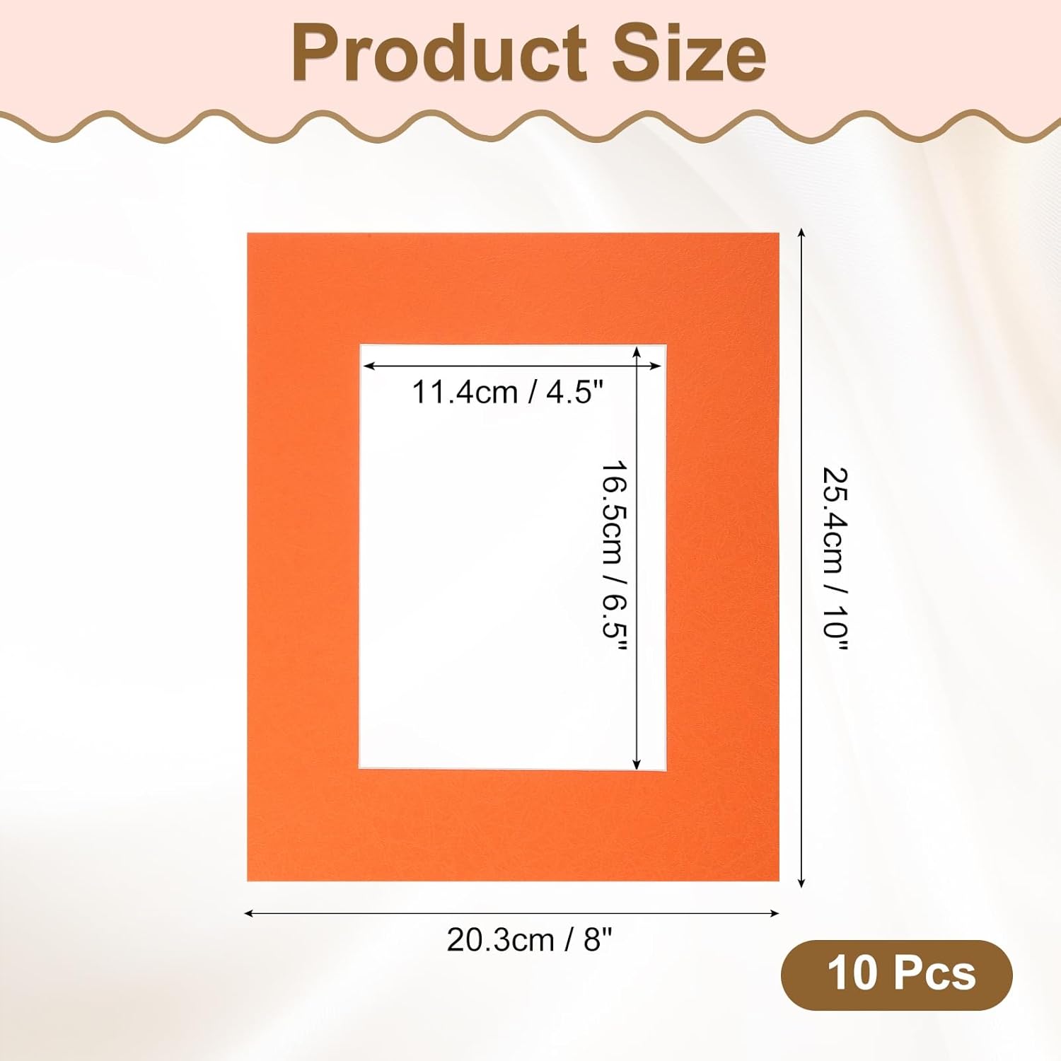 - [Picture Mats] Material: Cardboard; Color: Orange; Total Size: 20.3 x 25.4 cm / 8" x 10"; Bevel Cut Opening Size: 11.4 x 16.5 cm / 4.5" x 6.5"(L*W); Fit Picture Size: 5" x 7"; Package Content: 10 Pcs x Picture Mats