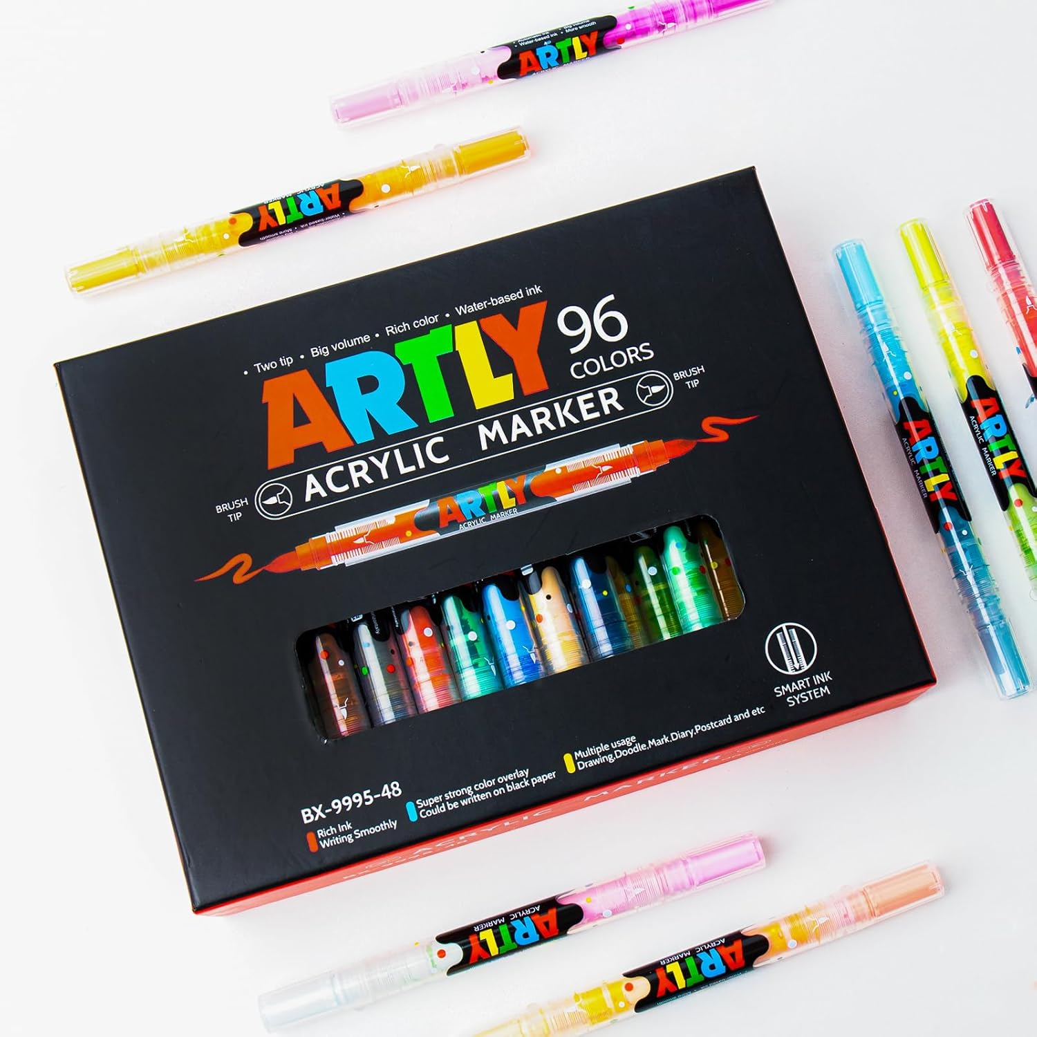 96 Colors Paint Markers, Dual-Color Acrylic Pens with Brush Tips, Double Tipped for Rocks & Art Supplies (48pcs/96colors)