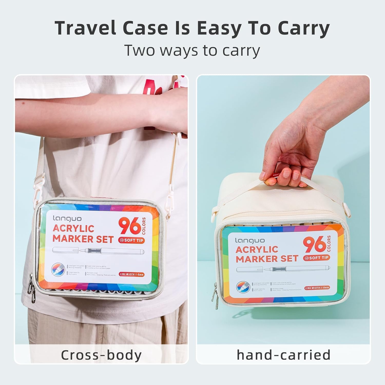 - Portable Crossbody Case: Stay organized with our included crossbody storage bag, featuring custom compartments to hold and protect all 96 markers. Lightweight and stylish, our acrylic paint perfect for outdoor sketching, school, travel, or workshops
