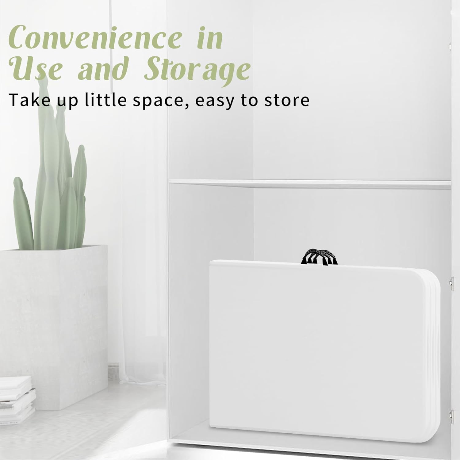 - Easy to Care and Clean: The tabletop surface is waterproof, oil resistant, and stain resistant, easy to clean with a damp cloth. The round corner design prevents people especially kids from being injured by collisions. Note: High temperature and open flame will damage the folding table, please use it with caution. To ensure the flatness of the table, please do not place heavy objects in the center of the table, so as not to cause the middle to collapse.