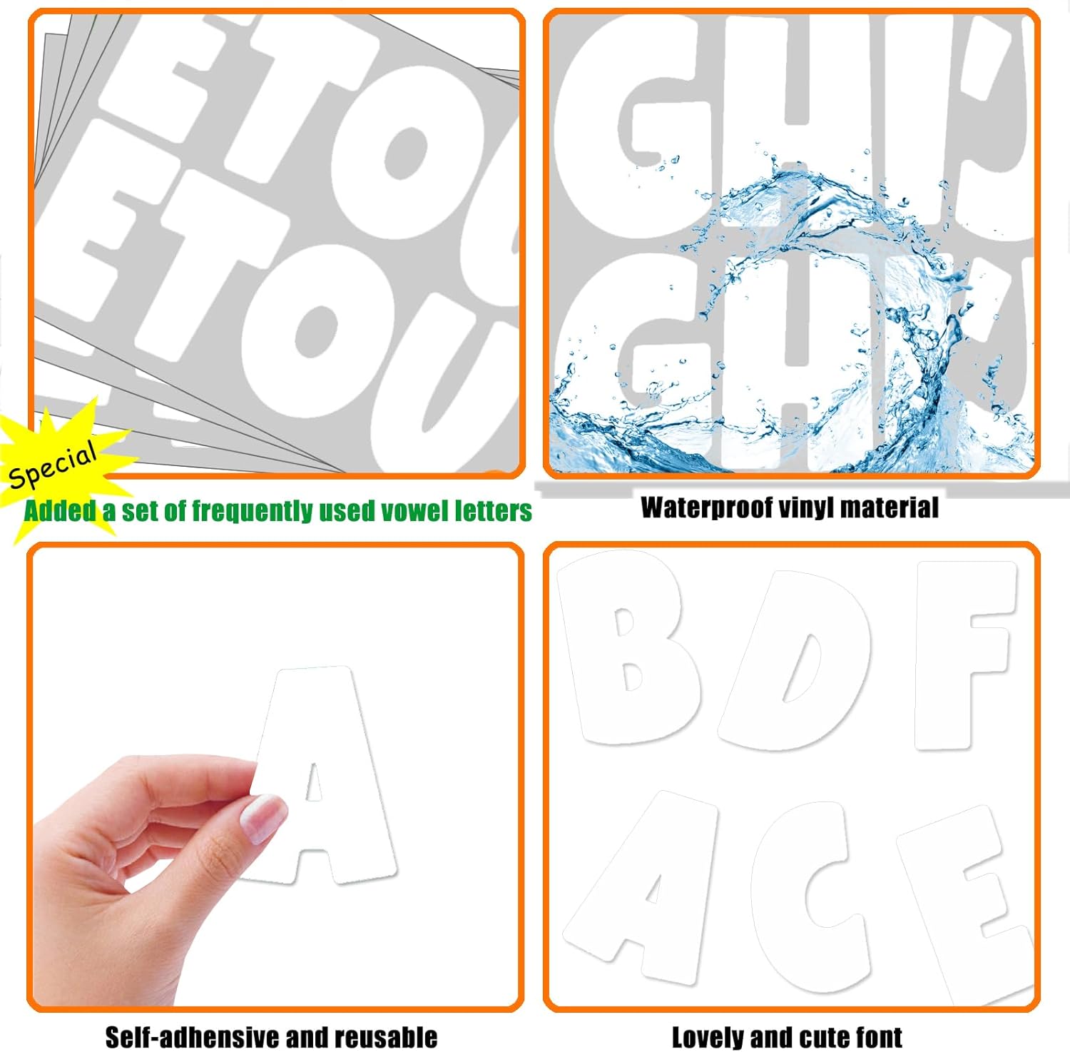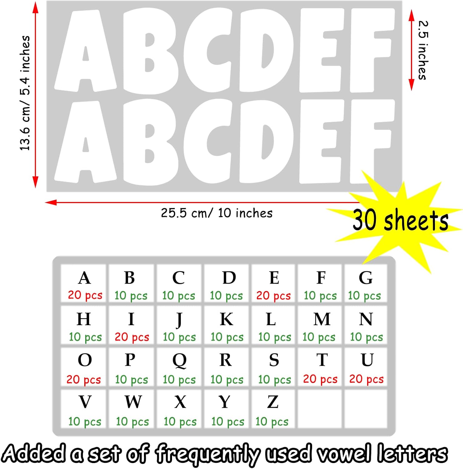 - Multi-Vowel Letter Set: This poster board letters pack contains more vowels A,E,I,O,U to better meet your needs.These cute sticker letters for poster board will surely be a great accent in your projects