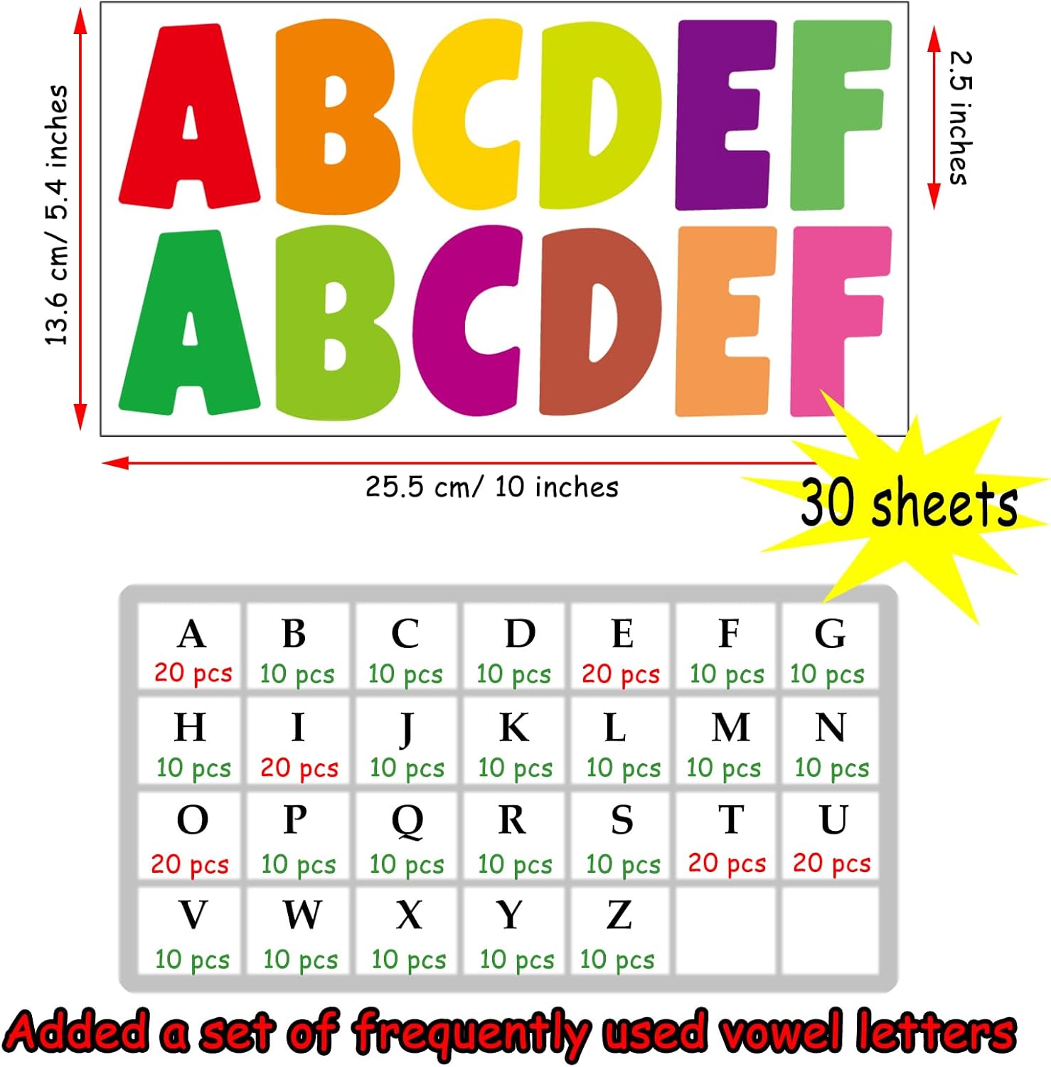 Bemeol 360 Pcs 30 Sheets Bulletin Board Letters 2.5 Inches Alphabet Stickers Self Adhesive Stick on Letters for Poster Board Classroom School Home Decor(Colorful)