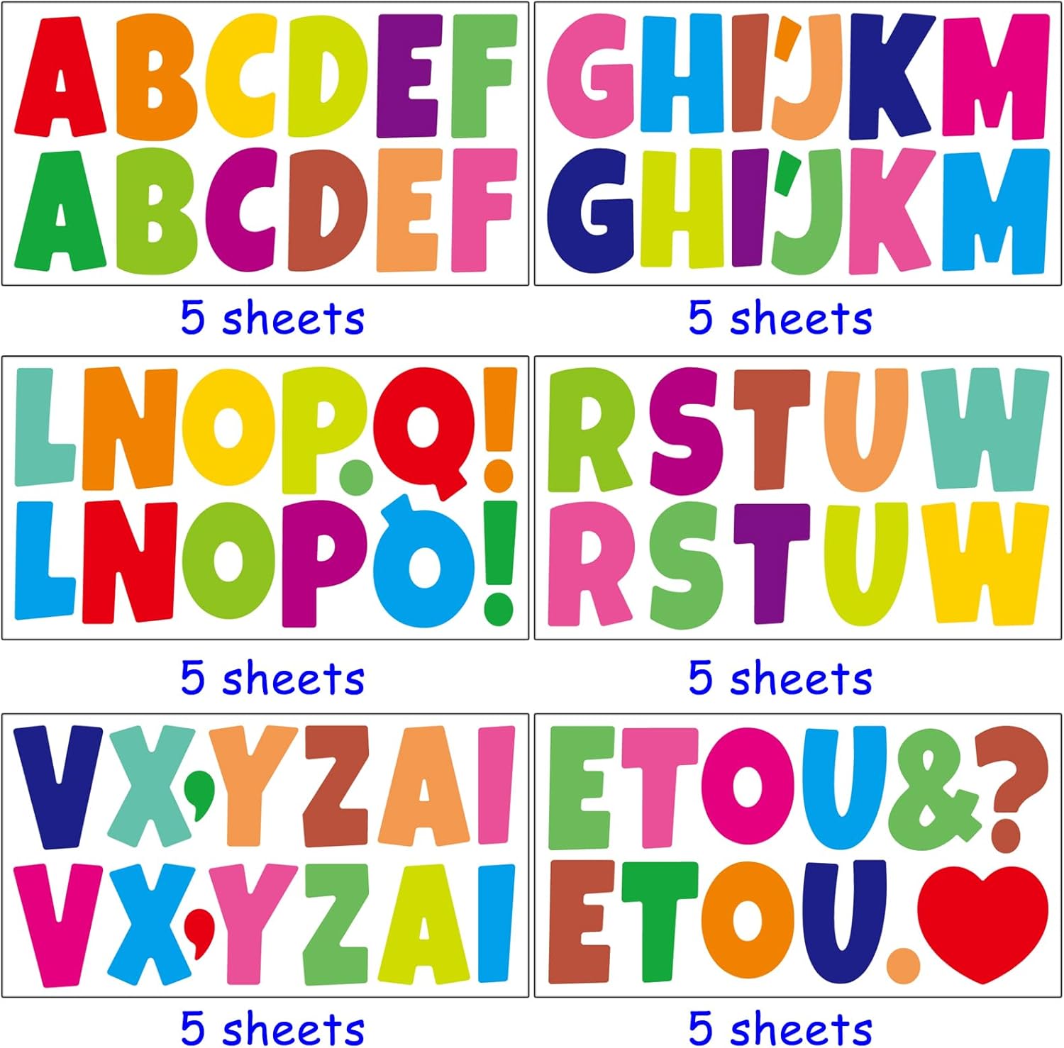 - Sufficient Quantity & Vinyl Material: Elevate your creative projects with this complete set of 310 pieces poster letters, and 50 punctuation stickers, total of 360 Pieces 30 sheets 2.5 inch sticker letters enough quantity to meet the need of classroom, bulletin board dรฉcor, craft projects and more. These sturdy poster board letters are made from durable vinyl material using a high quality printing process, and ensure long-lasting durability