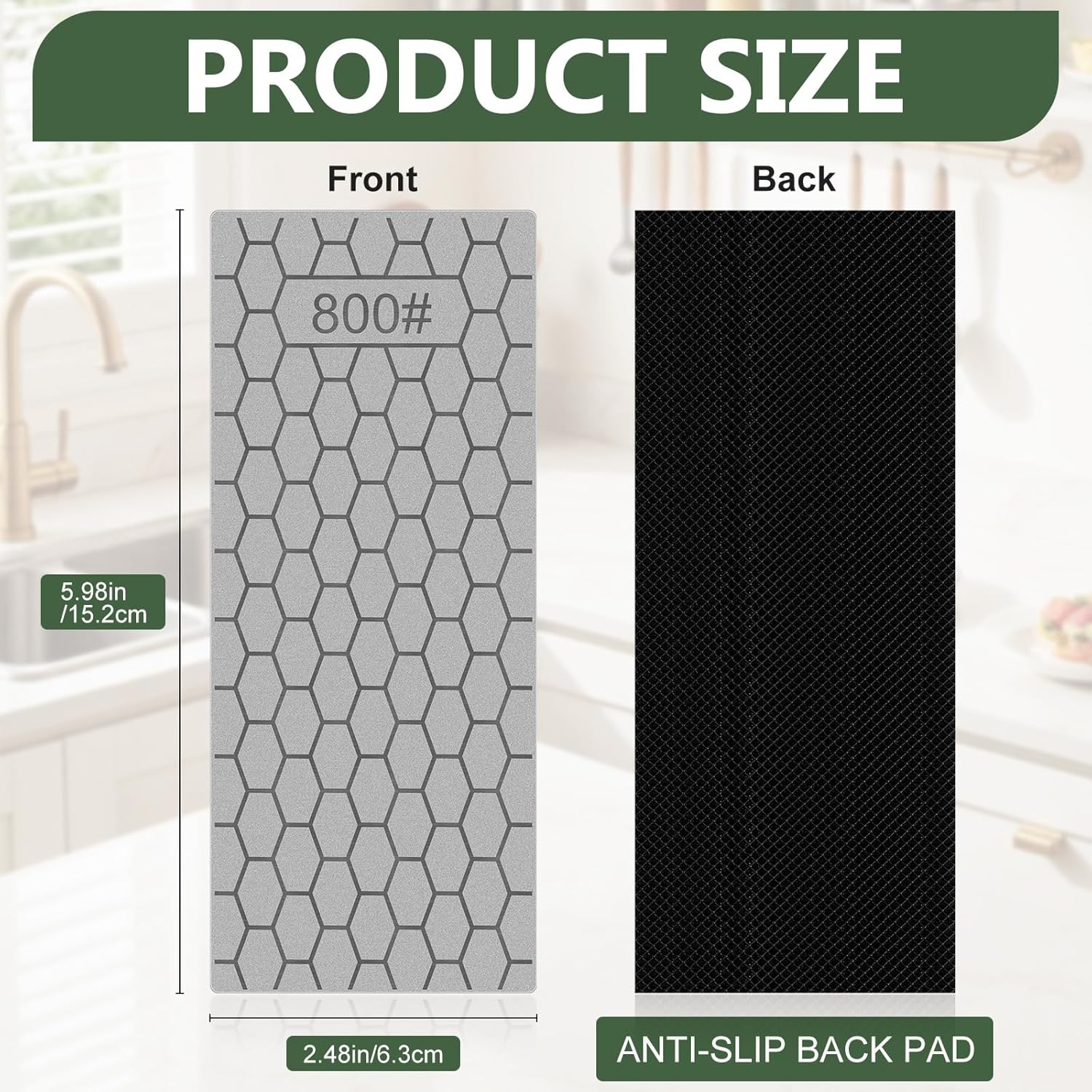 - UNIQUE DESIGN:Our diamond sharpening stone features a honeycomb surface that traps grinding debris, preventing scratches and ensuring consistent sharpening results. The knife sharpening stones non-slip base guarantees safety during use – ideal for woodworking tools and kitchen knives