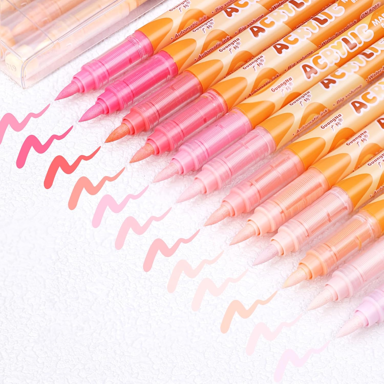 - 【Premium Guangna Acrylic Paint Markers Set-12 Vibrant Colors】:Our Guangna acrylic paint markers set includes 12 richly pigmented, vibrant colors. We offer Sweet Pink, Skin Tone, Macaron, Brown, and Red Brown series to meet all your creative needs from bold designs to subtle gradients.